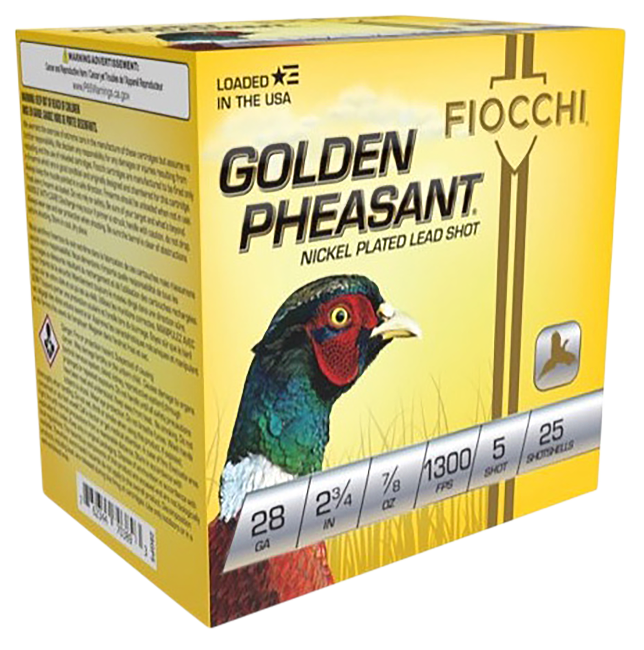 The Fiocchi Golden Pheasant loads feature nickel-plated shot that ensures hard, round pellets that fly straighter to the target and penetrate deeper.