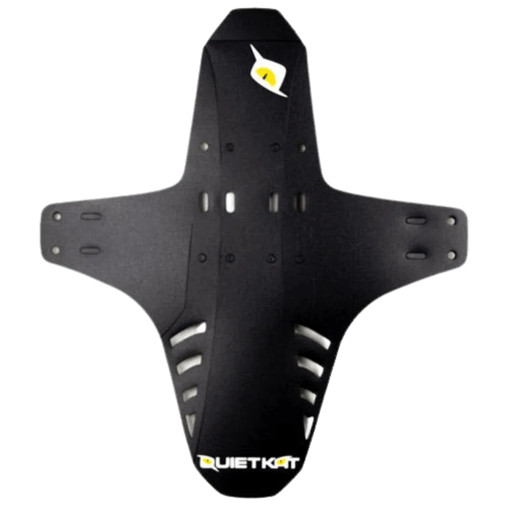 The QuietKat Flex fender is a low-profile front fender that attaches to the fork. The fender prevents mud, water, and grit from shooting off the tire and into the rider's eyes.