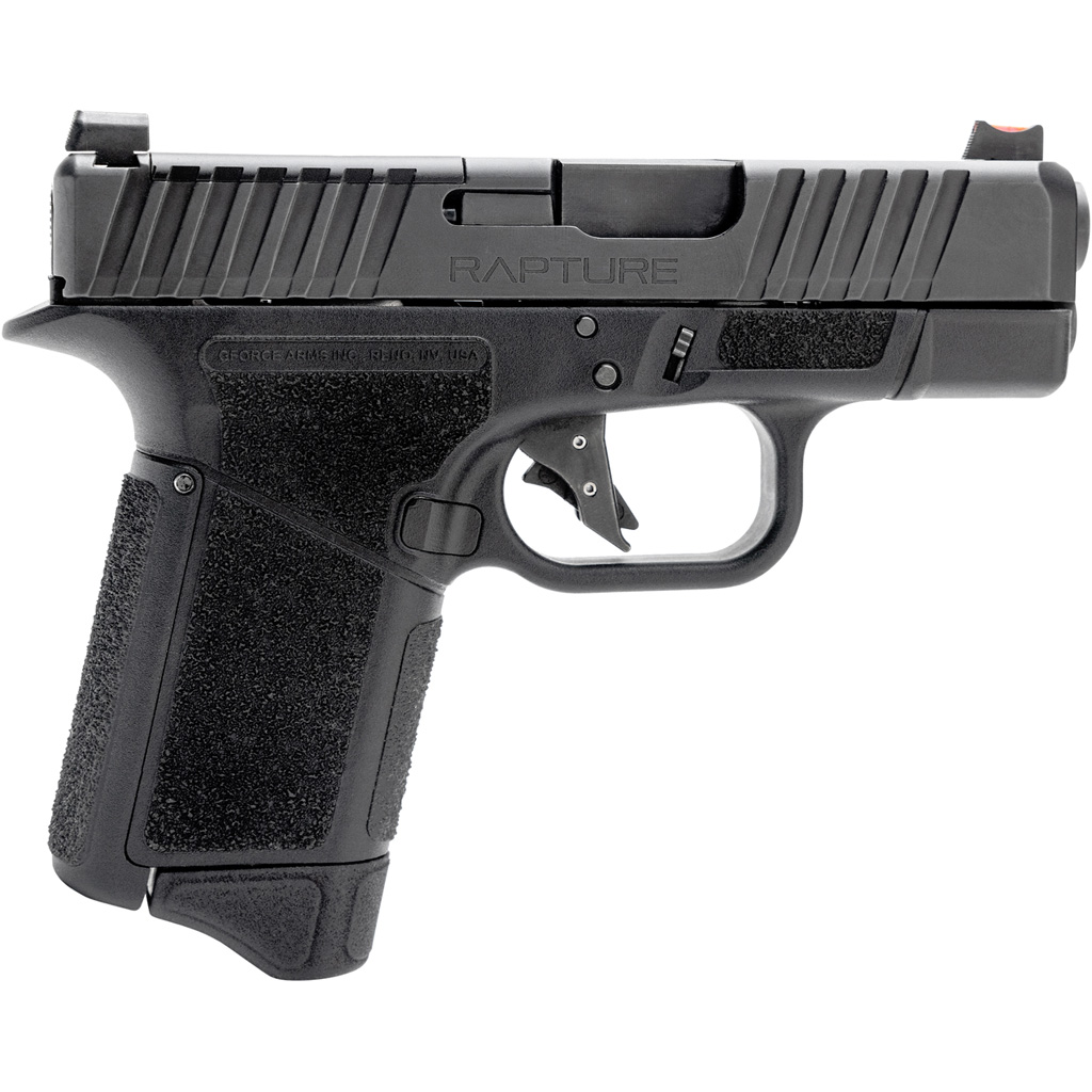 Discover the GF9 Rapture from GForce Arms, Inc., a masterfully engineered sub-compact handgun made in the U.S.A. This firearm stands out with its front and rear slide serrations, fiber optic sights, and an optics-ready slide for RMR and RMSC red dots. Its 3.25-inch precision 9mm barrel ensures outstanding accuracy, complemented by a grip designed for excellent recoil management and a smooth flat-faced trigger. Highly compatible with Glock components, the GF9 Rapture offers extensive customization options, including adjustable grip backstraps and a variety of aftermarket parts to personalize your shooting experience.