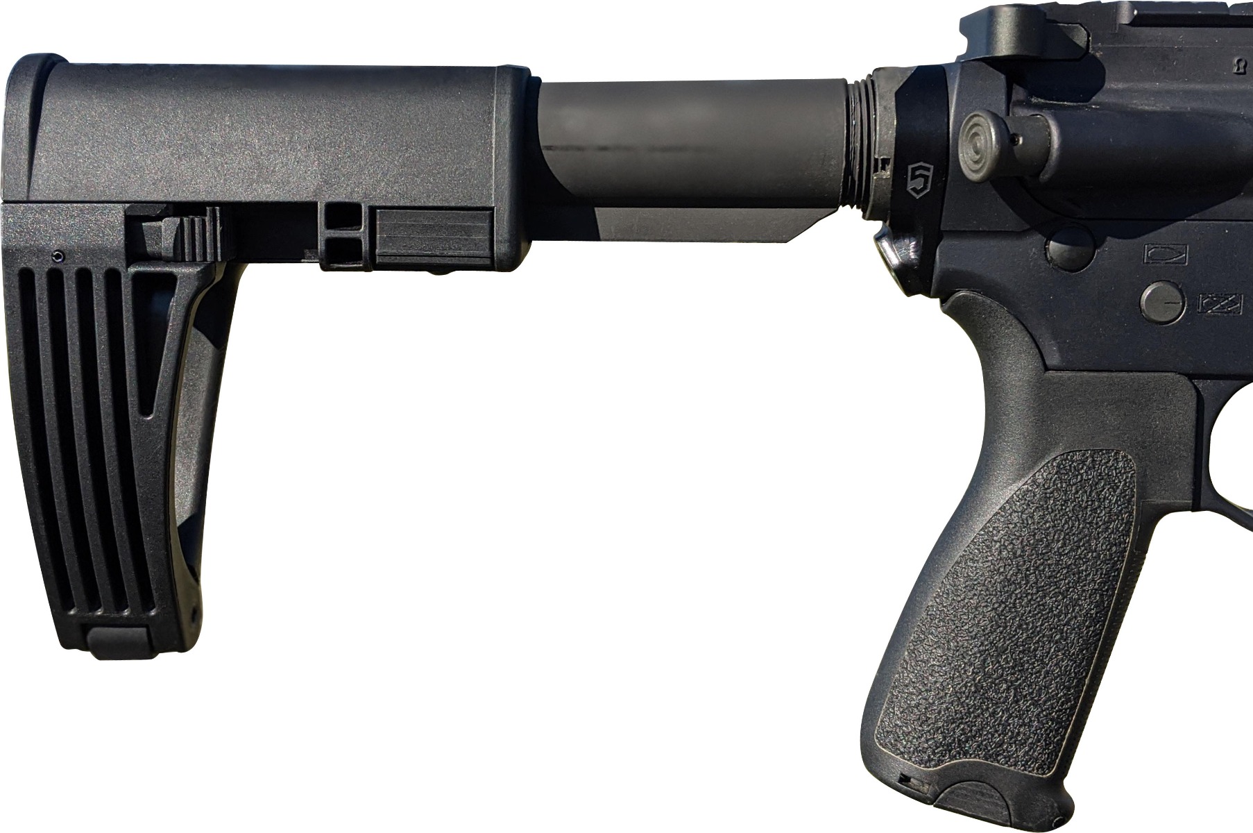 The Tailhook Mod 2-C is a PDW sized arm brace without the PDW price. They come with a propriety buffer and spring, but still works with standard bolt carrier groups. This 5-postion brace uses the exact same fold down "Tailhook" arm as the orginial Mod 2, at a 1.5" shorter length.