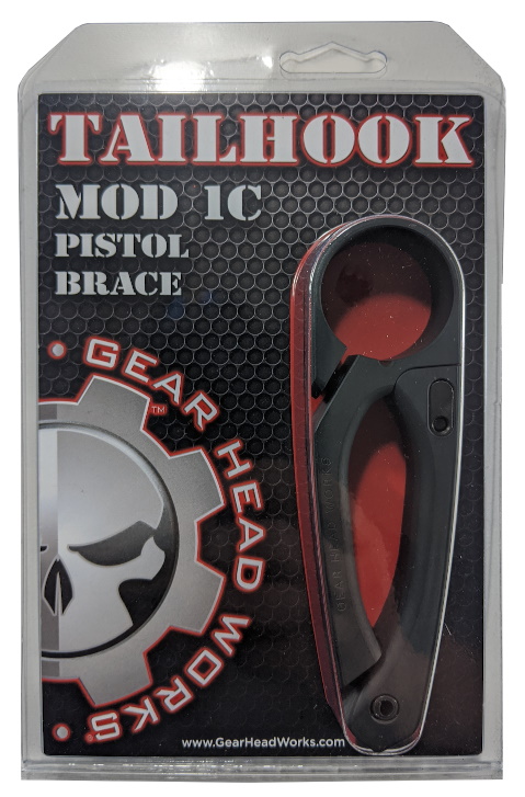 The Patented Tailhook MOD 1C is 30% lighter and 30% more compact than or standard Mod 1. With a profile similar to the SCW Tailhook it truly is the most compact pistol brace on the market today. At less than an inch thick, it can be adapted to practically every platform on the market. To activate the brace functionality, depress the release button and pull the arm down. This creates the shelf that will counterbalance the muzzle weight of your large frame handgun. The ability of your forearm to hold the weight allows you to relax your shooting wrist and concentrate on trigger control. True one handed operation is achieved since you do not need a second hand to attach the brace to your arm. MOD 1C can be set up for right or left handed operation.