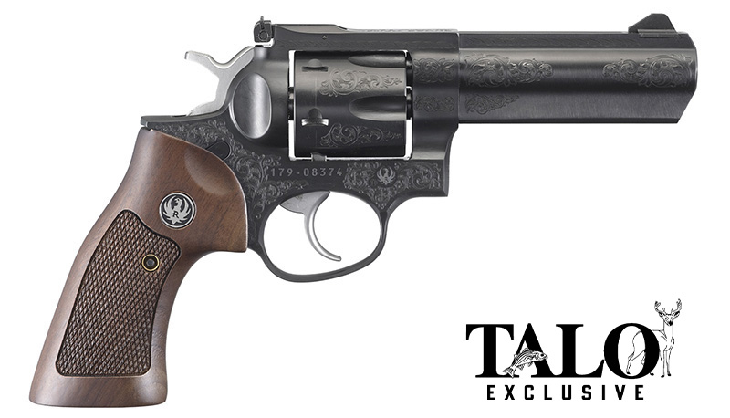 Ruger, MFG# 1783, UPC: 736676017836, UOM: EA, GP100, 357 Mag, 4" Barrel, QC Front/Adj Rear Sights, Blued, Wood Grip, Engraved, TALO, RUGE, RUGEHG20, RUGEHGALL, HG20, HGALL