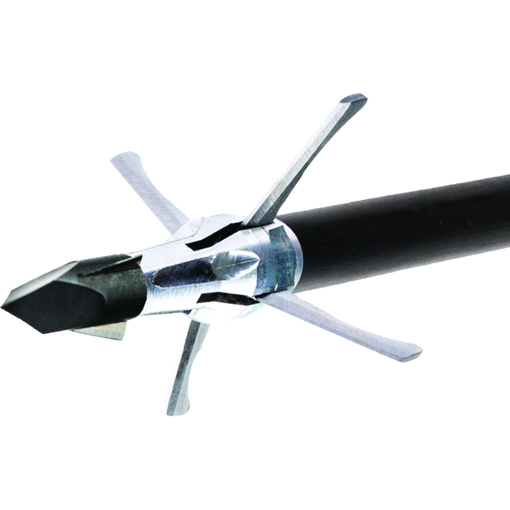 Led by the proven bone-busting Razortip, the Grim Reaper Mini Mag Razortip Mechanical Broadhead offers bowhunters a compact yet powerful design. This 4-blade expandable broadhead opens rapidly to create a large 1-1/4" wound channel with its strong, razor-sharp .035 stainless blades. Featuring 3 mini razors locked in a hardened steel Trocar tip, it pulverizes heavy bone and slices like a scalpel for excellent durability and penetration.