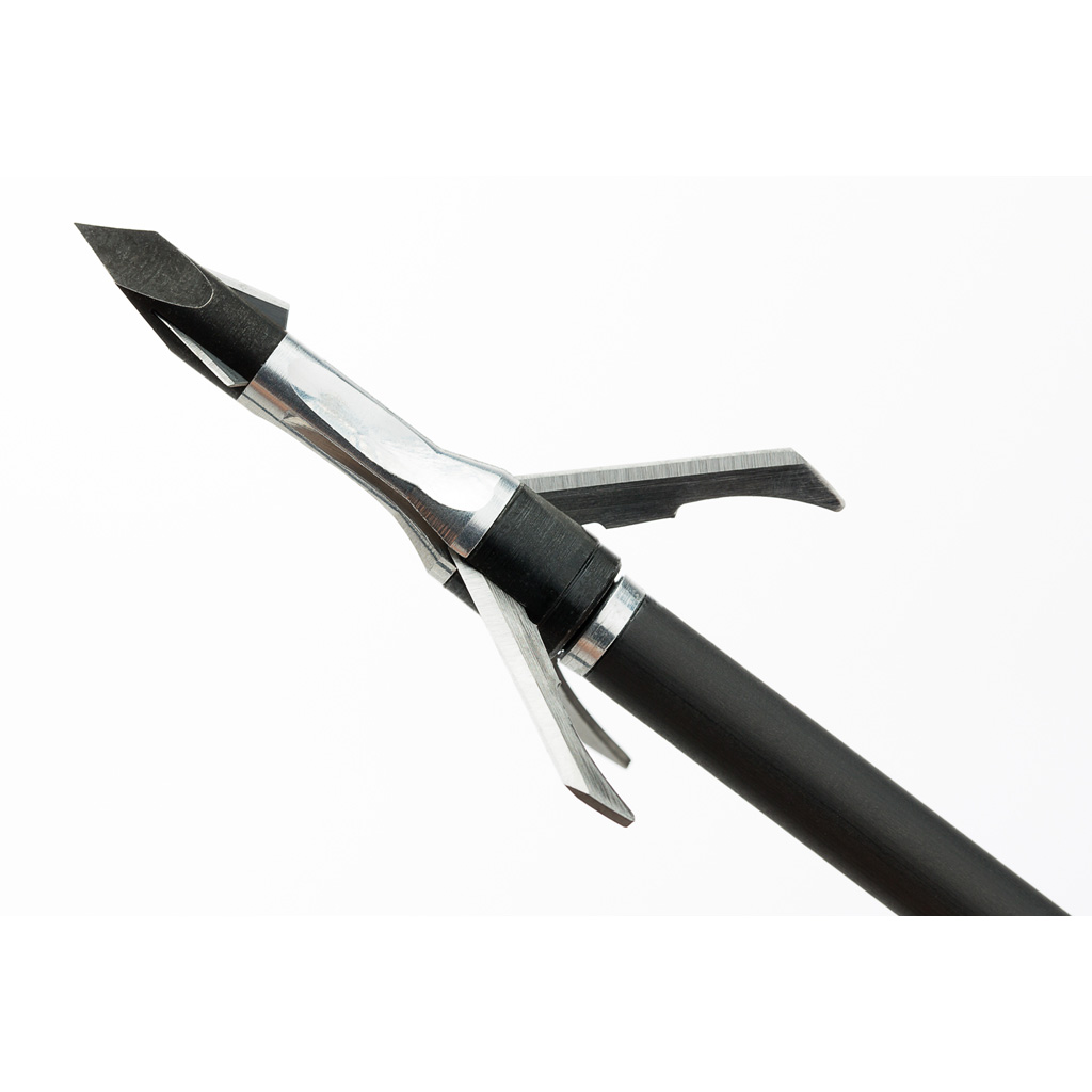 Three blade mechanical broadhead with aircraft-grade aluminum ferrule and .035" thick blades. Features a chisel tip with mini blades for increased penetration. Includes practice head.