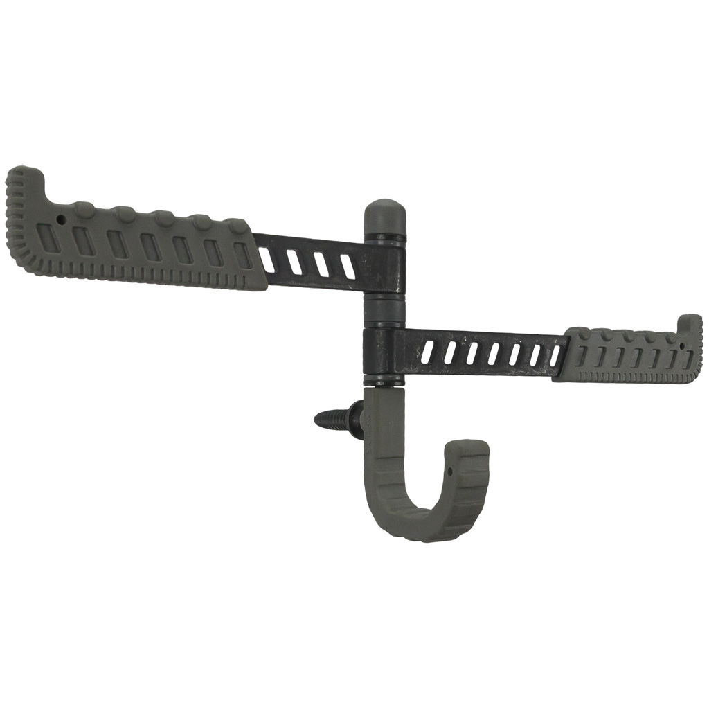 Strong and easy to use, the Hawk Tactical Trio Tree Hook gives hunters multiple options for organizing key gear in the stand. Hawk's ultimate tree gear organizer, this design combines Hawk's tree hook and bow arm technology in 1 handy gear holder. The Trio features a J-Hook in the center for backpacks and other heavier items, with 2 Tactical Bow Arms on either side. These versatile arms rotate and swing out so you can place your hunting accessories exactly where you want them. The Trio also features an ultra-sharp AugerTip threads that start fast and screw into the hardest trees easily. Molded SilentGrip finish.