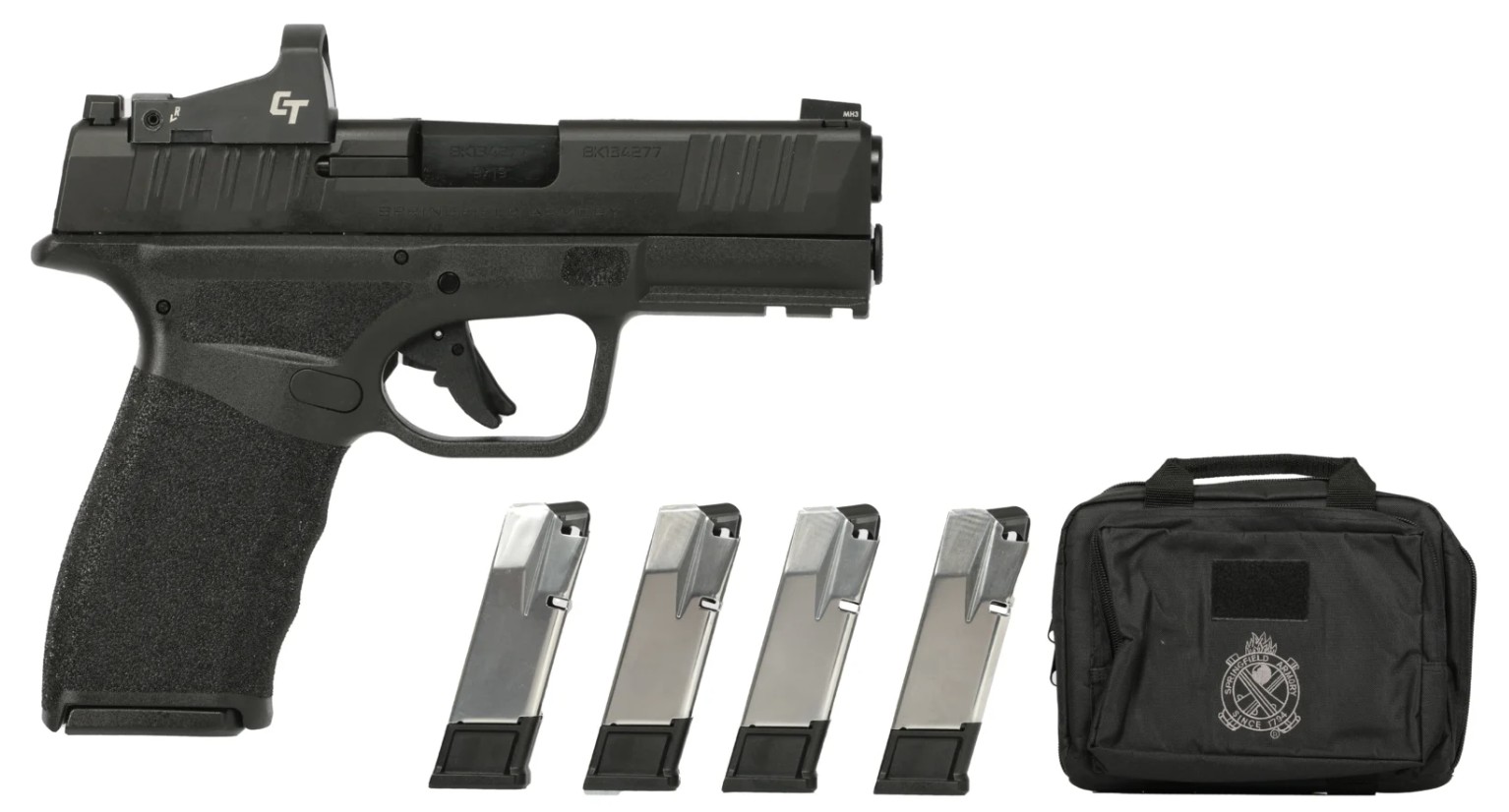 Springfield Armory, MFG# HCP9379BOSPLC-GU25, UPC: 706397990275, UOM: EA, Hellcat Pro Compact OSP, 9mm, 3.8" Barrel, CT-1500 Red Dot, Range Bag, Black, (5) 10-rd, GEAR UP, SPRI, SPRIHG10, SPRIHGALL, HG10, HGALL