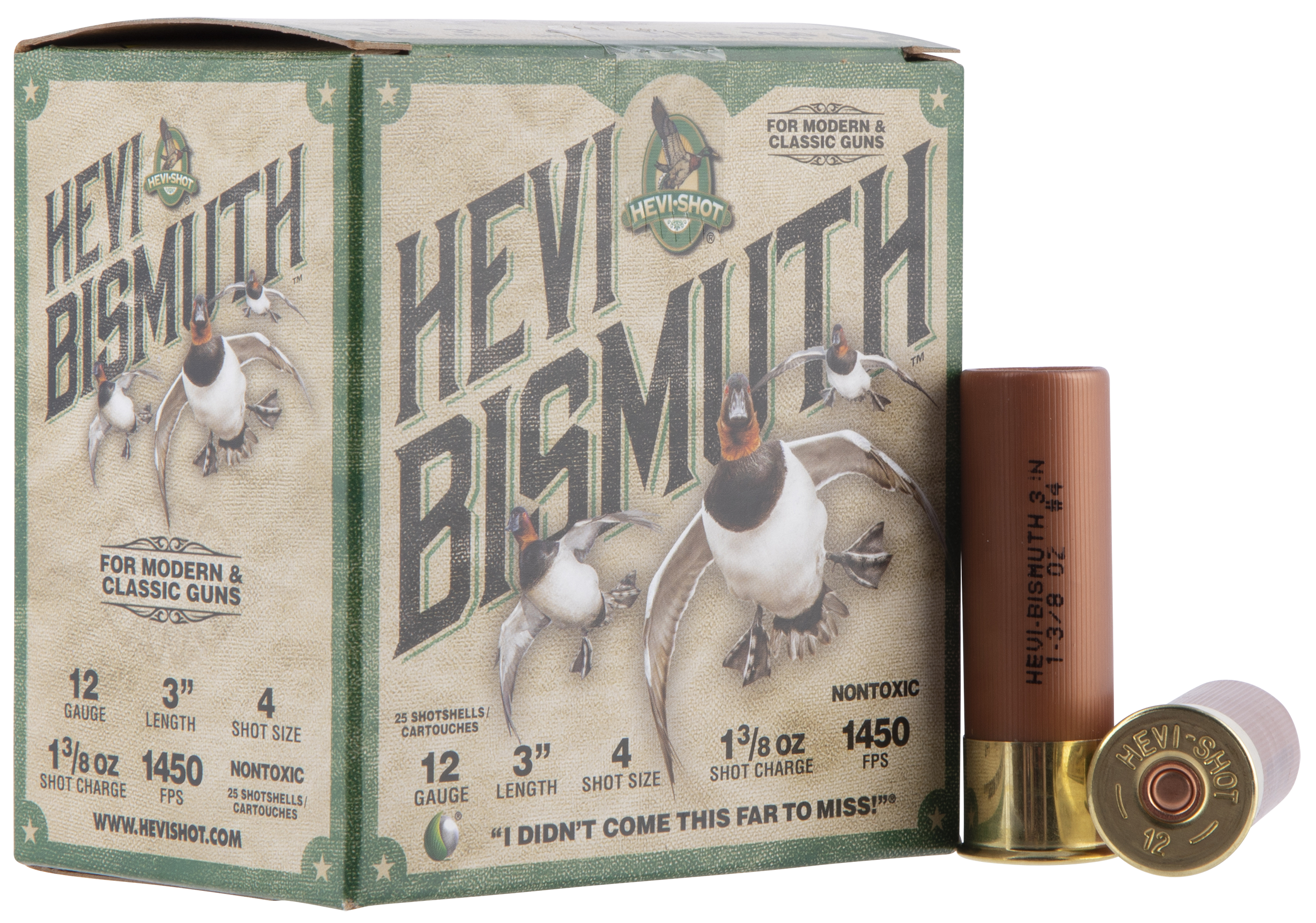 HEVI-Bismuth is 22% more dense than steel, which allows you to drop down a shot size for the same lethality. HEVI-Shot's bismuth is safe to shoot in modern and classic guns.