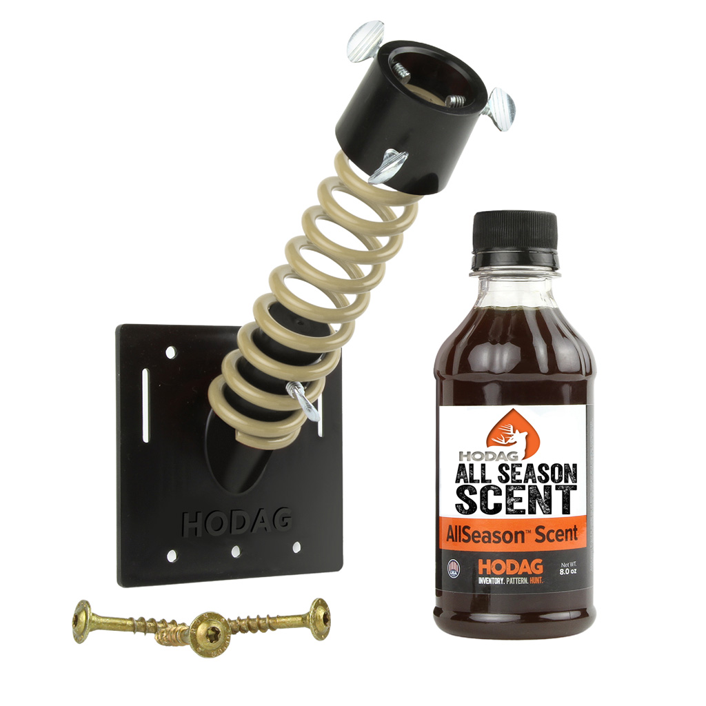 The HODAG Licking branch system includes the Licking Branch FlexPlate, 3 anchoring screws, and 8 oz. of All Season Scent. The Branch System allows you to create mock scrapes with the a branch at the perfect height and angle in the location you desire.