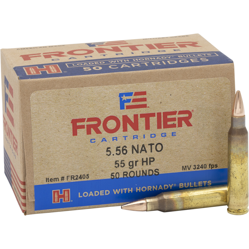 Hornady has partnered with the Lake City Army Ammunition Plant to bring you Frontier ammo. Frontier is American Made and Military Grade ammunition that is optimized for consistent reliable performance in today's modern sporting rifles. This load uses brass casings with military-grade boxer primers and propellants to ensure proper feeding and ignition with every shot.