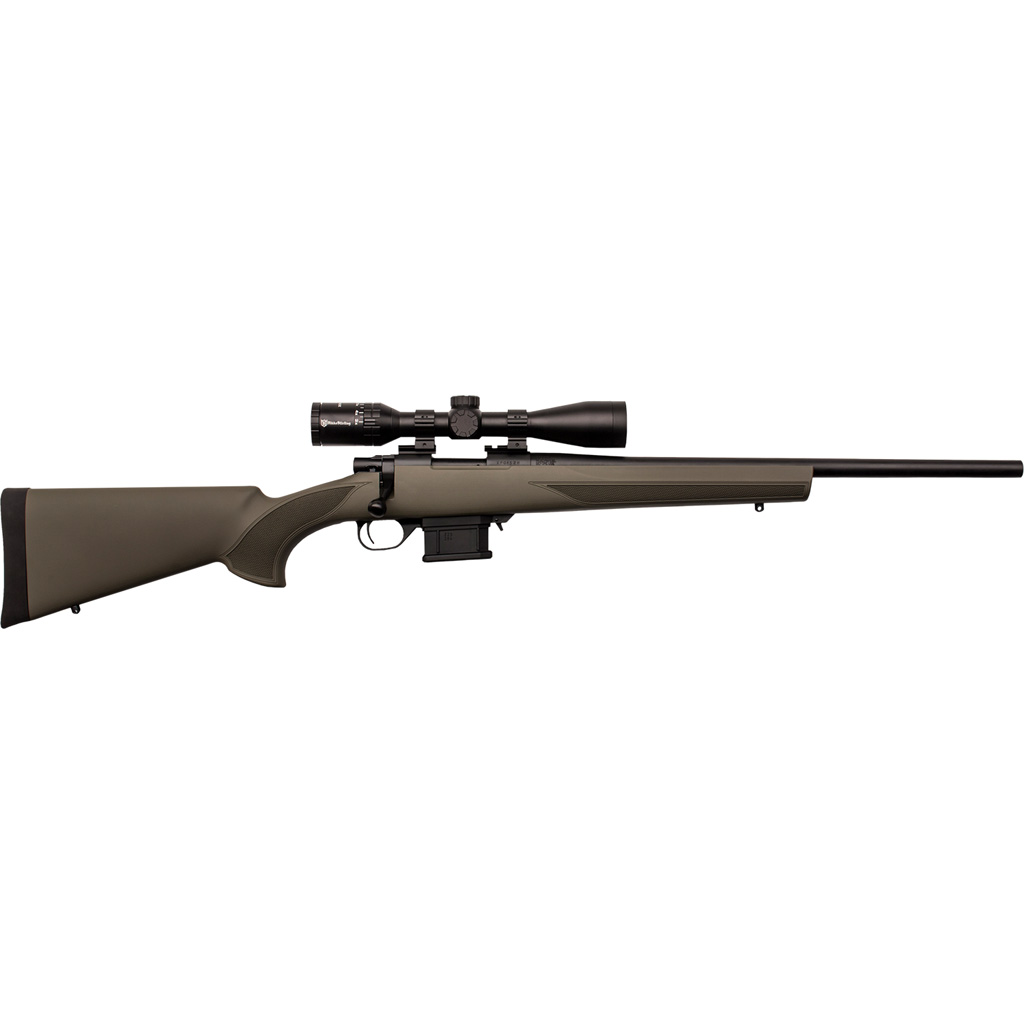 The Mini Action Hunter rifle features a Synthetic green stock, threaded barrel. It has a bolt that is 12 percent shorter than regular short actions. It has a three position safety, and sling swivel studs. Scope Package includes – Nikko Stirling 4-12×41
