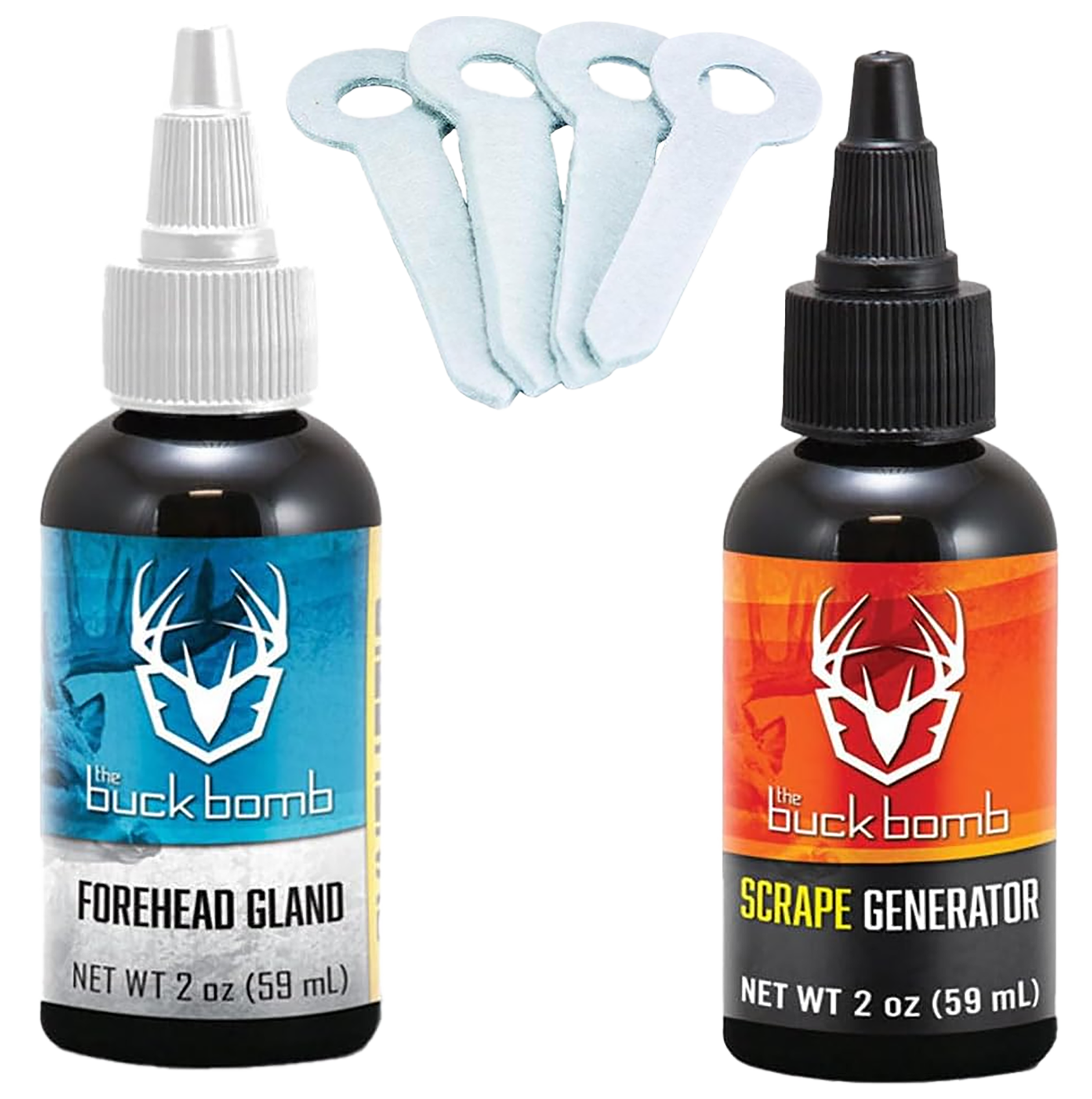 The Buck Bomb Scrape Kit includes both the 2oz Scrape Generator scent as well as the 2oz Synthetic Forehead Gland, a deadly combination for attracting bucks throughout the rut. Forehead Gland imitates the scent that comes from the forehead of a buck when he makes a rub, while Scrape Generator utilizes both Doe n Estrus and BucRut scent to create the situation of a hot doe and buck in the area.