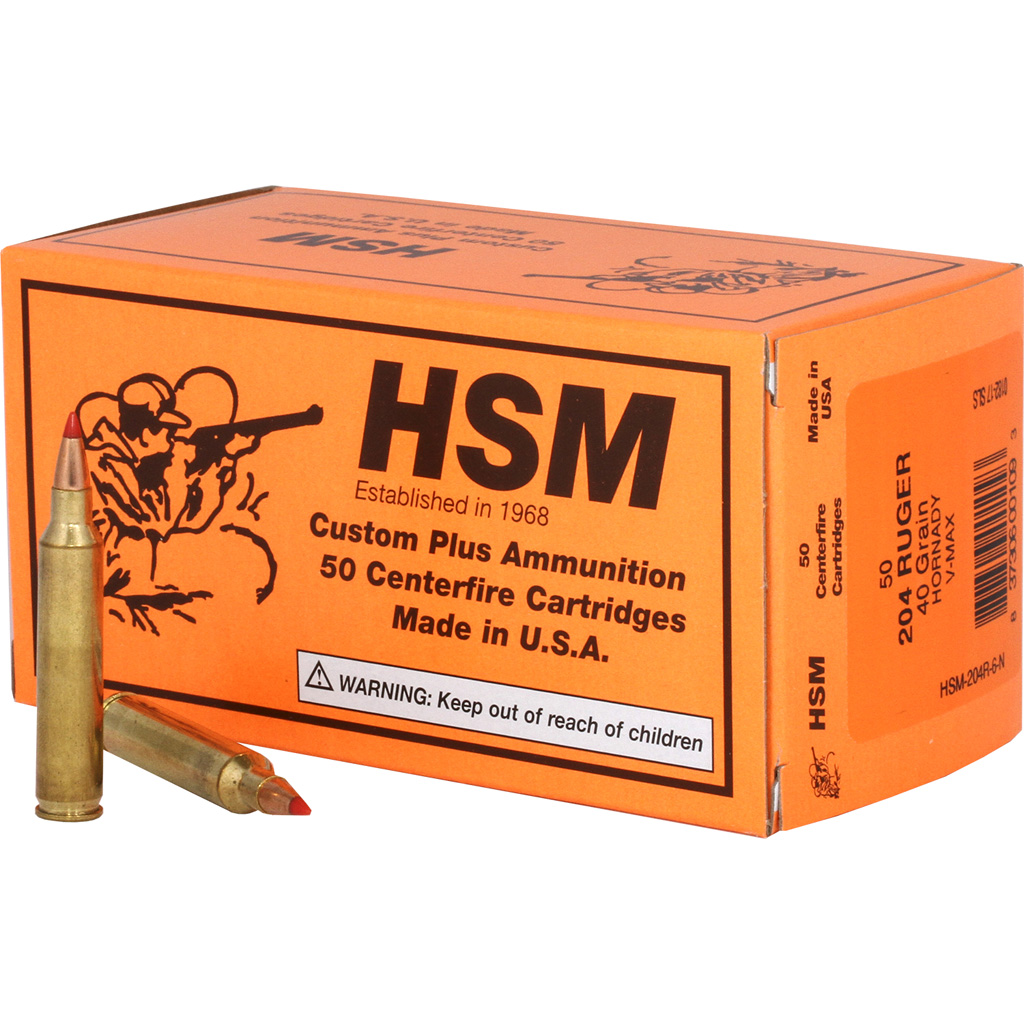 HSM 204 Ruger Ammo 40gr V-Max Ammunition - 50 Rounds