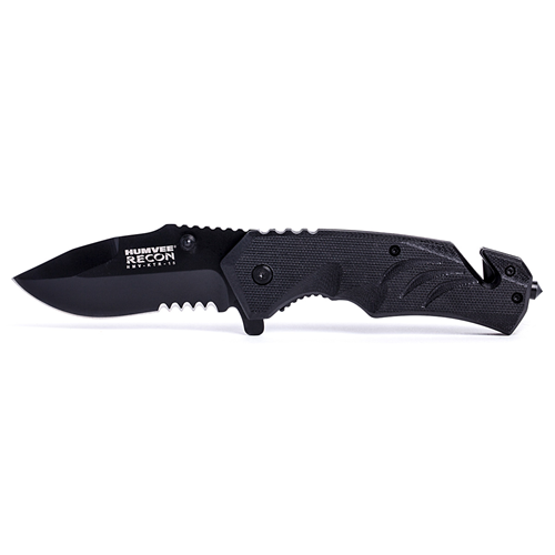 Black Stainless Steel 1/3 Serrated Blade, Metal Pocket Clip, Thumb Stud, Spring Assist