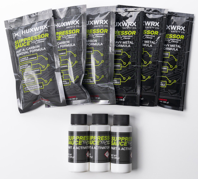 Suppressor Sauce is the first suppressor cleaner available in powder form that is odorless ammonia-free non-flammable and safe to use on Titanium Inconel Stainless Steel and Aluminum suppressors. Suppressor Sauce Part A: Carbon Removal Formula & Activator and Suppressor Sauce Part B: Heavy Metal Removal Formula are advanced single use proprietary formulas designed to eliminate carbon buildup and to target heavy metal deposits like lead and copper effectively and safely without requiring disassembly or excessive manual labor. - What's included in the refill kit: - Three (3) Packet of Part A: Carbon Removal Formula - Three (3) Bottle of Part A: Activator - Three (3) Packet of Part B: Heavy Metal Removal Formula