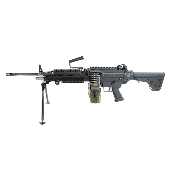 The Closed Bolt SAW is a belt fed multi caliber self-loading rifle configured in 5.56mm. As the name implies this rifle fires from the closed bolt position unlike its parent platform which fires from the open bolt position. The closed bolt operating system result in a rifle with much less mechanical movement when the trigger is pulled resulting in better accuracy. This rifle uses a standard H&K G3 style trigger with a higher strength 33 lb hammer spring made specifically for use in belt fed weapons. The closed bolt SAW ships with a quick change 16.1 inch barrel but can also be used with existing 18 inch barrels. Although this rifle is shipped in a 5.56mm configuration it is capable of firing 300 BLK 7.62x51 .260 REM and 6.5CM with the appropriate conversion kit.