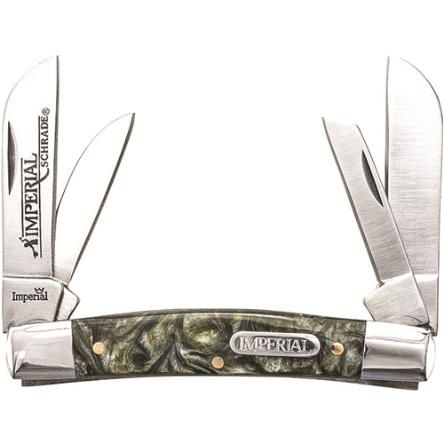 Imperial Congress Folding Pocket Knife, 3Cr13MoV Stainless Steel Duel Sheepsfoot Blades, Coping Blade, and Pen Blade with Nail Pulls, Black Swirl POM Handles with Stainless Steel Bolsters, Brass Pins, and Heat Treated Back Springs