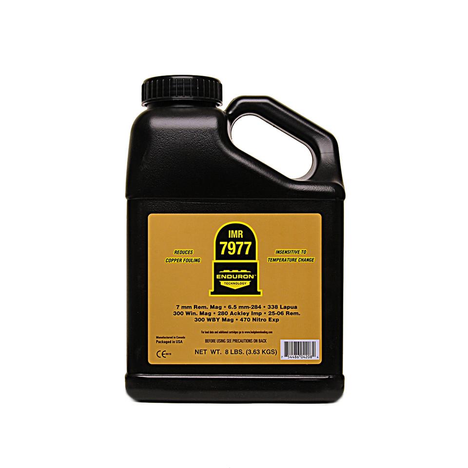 The slowest burn rate Enduron Technology extruded powder is IMR 7977 and is a true magnum cartridge propellant. It yields outstanding performance in such cartridges as the 300 Winchester Magnum 7mm Remington Magnum 338 Lapua and a host of others. Loading density is perfect for magnums nicely filling the case at maximum charges contributing to superb uniformity and accuracy. The 7mm Remington Magnum “never had it so good”!