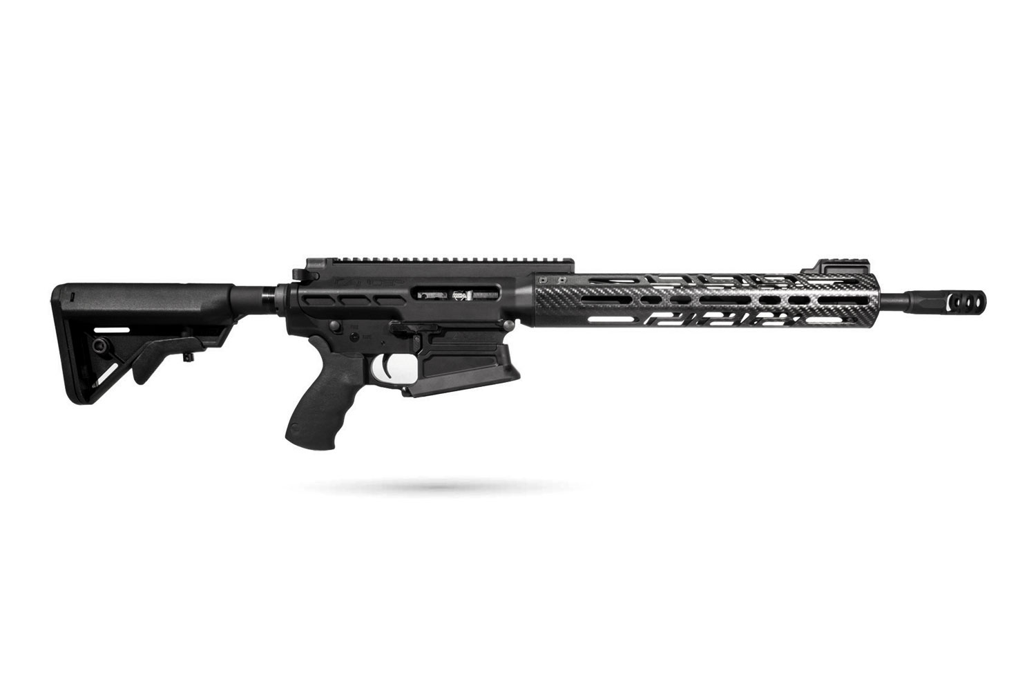 The L30 Modern Battle Rifle (MBR) is light-weight, 30 caliber, modern sporting rifle. This rifle features a matched 7075, hard coat anodized upper with top rail, and lower receiver, with an ambidextrous bolt release, over-sized magazine release, tactical magwell and our carbon fiber handguard with a front sight rail covering a medium contour, black nitrided, 16'' barrel chambered in .308 Win with a 1:10'' twist and rifle-length gas system. Equipped with a Mil-Spec trigger group, the MBR also comes with a Lancer Nitrous Compensator, an Ergo pistol grip and B5 System's Bravo SOPMOD stock on a Mil-Spec, 6 position buffer tube for increased comfort and recoil control. The rifle weighs 9 lbs unloaded.