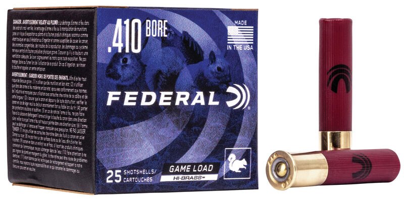 Federal, MFG# H412 7.5, UPC: 029465008833, UOM: BOX, Game-Shok Hi-Brass, 410 gauge, 2.5". .5 oz, #7.5 shot, 25/box, FEDE, FEDEAM10, FEDEAMALL, AM10, AMALL, Case: 10