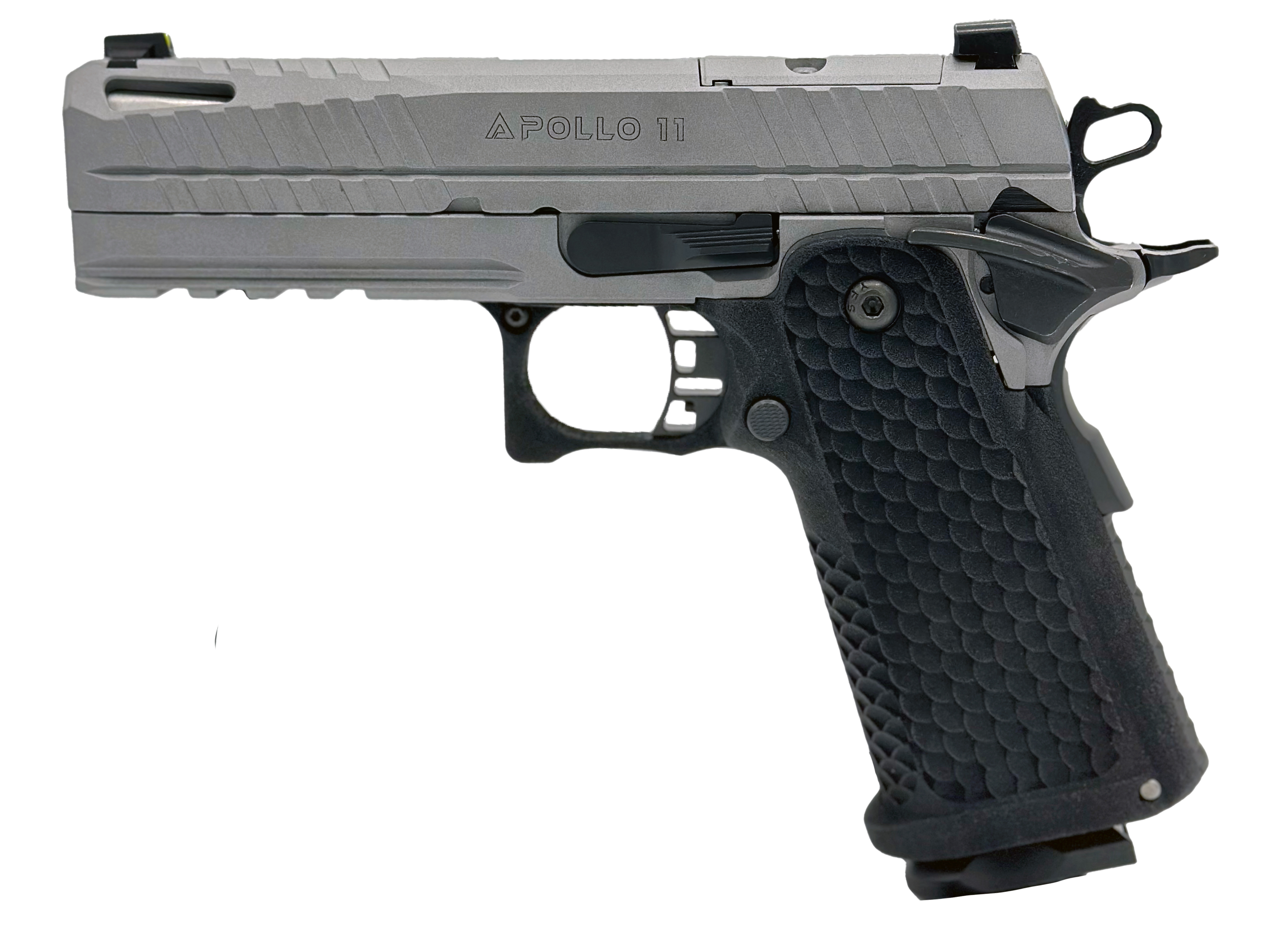 The Apollo 11 Compact 9mm Pistol offers the same exceptional blend of style and performance as its full-size counterpart tailored for those seeking a more compact and maneuverable firearm. This version features a 4.15-inch barrel making it an ideal choice for concealed carry or for users who prefer a more compact profile without sacrificing the superior functionality of the Apollo series. Despite its reduced size the compact model maintains a robust double-stack magazine capacity of 17+1 rounds of 9mm ensuring that firepower is not compromised. - Engineered with precision the Apollo 11 Compact retains the hallmark features of its larger version. It boasts a heat-treated 416 stainless steel slide and a durable 4140 steel frame providing reliability and a sophisticated appearance. The pistol's shorter barrel is matched with a meticulously tuned trigger system for a crisp consistent pull and a left-hand 1:16 rifling ensuring remarkable accuracy in a smaller package. The compact design enhances concealability and handling while the innovative recoil reduction system and ergonomic grip texture offer comfortable shooting and effective control. Equipped with an RMSc optic cut and accessory rails this compact model offers versatility and customization making it a top choice for both everyday carry and tactical applications. The Apollo 11 Compact is a testament to Live Free Armory's dedication to quality and innovation backed by a Lifetime Warranty with reliability guaranteed. - Caliber: 9x19mm - Weight (No Magazine): 32.61 oz - Slide Width: 0.925 - Width (Overall): 1.21 - Slide Length Complete: 6.63 - Length (Overall): 7.5 - Height (Overall): 5.46 - Magazine Capacity: 17 - Barrel Length: 4.15 - Barrel Rifling: 1:16 Left Hand - Length of Twist: 4.11 - Trigger Pull: 3.5lbs - Trigger Travel: 0.310 - Sight Radius: 5.62 - Model: Apollo 11 - Optic Cut (Footprint): RMSc