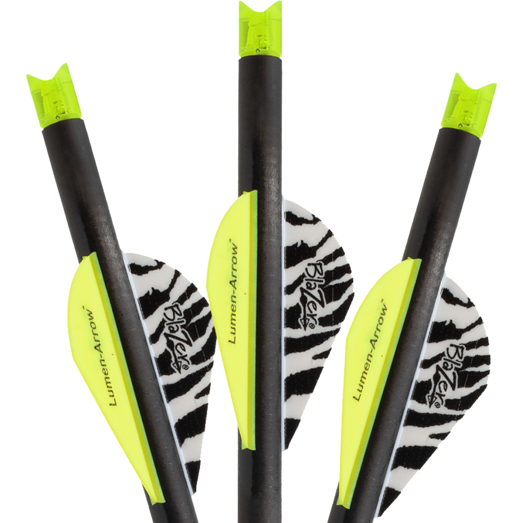 Carbon crossbow bolts fletched with 2” Bohning Blazer Vanes and equipped with green Lumenok lighted nocks. Available in 20” (338 gr.) and 22” (345 gr.) Weights do not include points.