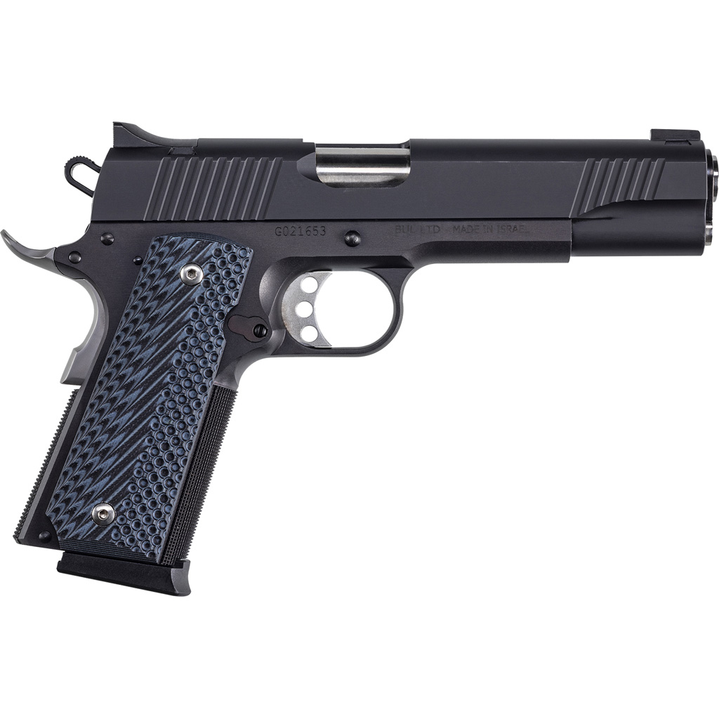 The Desert Eagle 1911 single action model is built with a 5 inch barrel and shipped with two magazines with extended base pads for positive magazine insertion. The frame is precision cast and machined from high quality steel and the slide is machined from solid billets of steel and then finished in matte black. The Desert Eagle 1911 features high-ride beavertail grip safety, extended magazine release, aluminum trigger with an overtravel stop, stainless steel full-length guide rod, extended thumb safety, enlarged ejection port, beveled magazine well and G10 grips help in place by stainless steel hex screws.