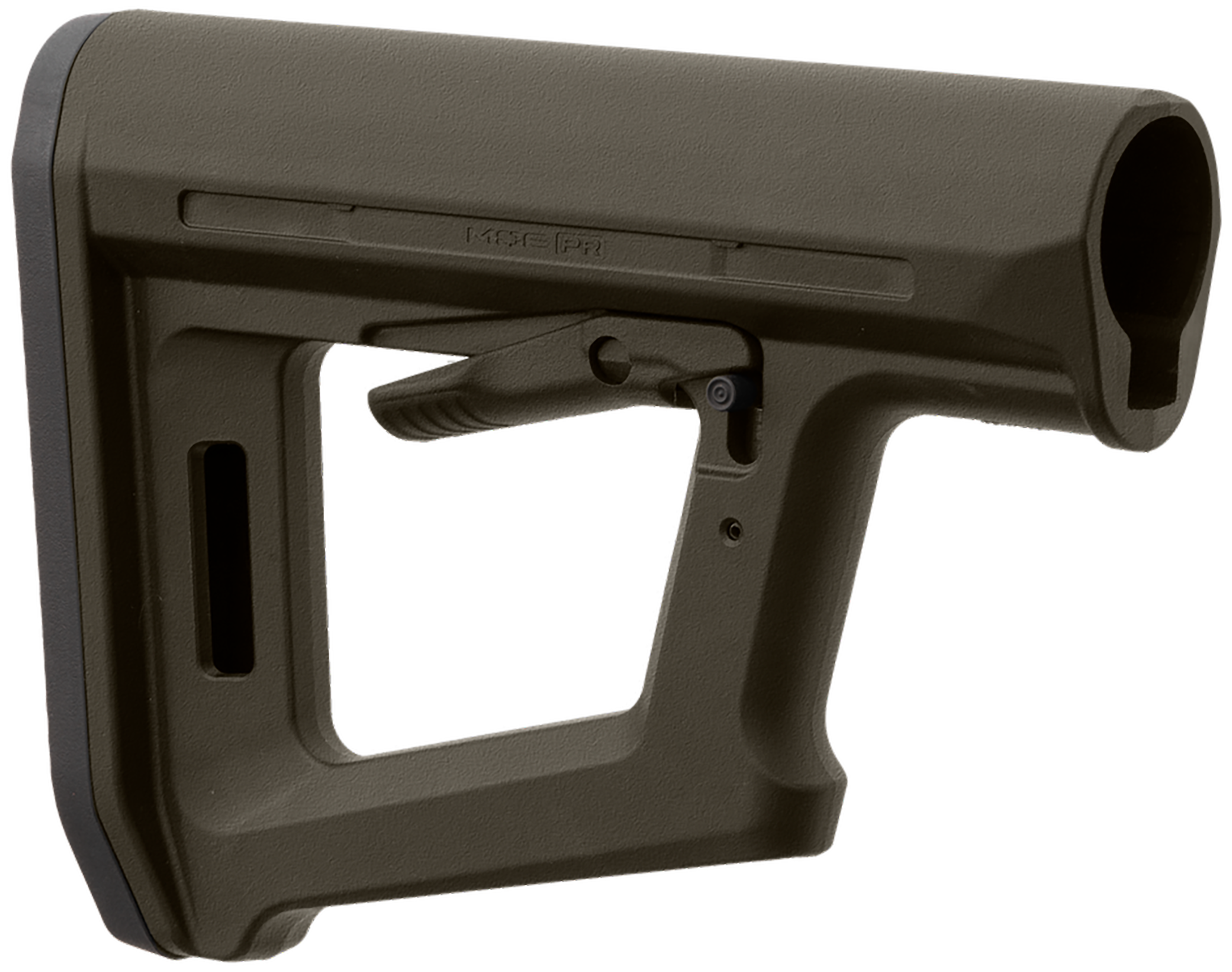 The MOE PR is a full-size carbine stock that blends the simplicity of the legacy MOE Carbine Stock with design lines reminiscent of the PRS Lite. These similarities naturally incorporate some of the features found on the PRS Lite, including a rest on the front edge of the stock for the support hand that allows shooters to apply rearward pressure to drive the stock securely into the shoulder for precise shot placement, and the bottom of the stocks frame also serves as a bag rider.