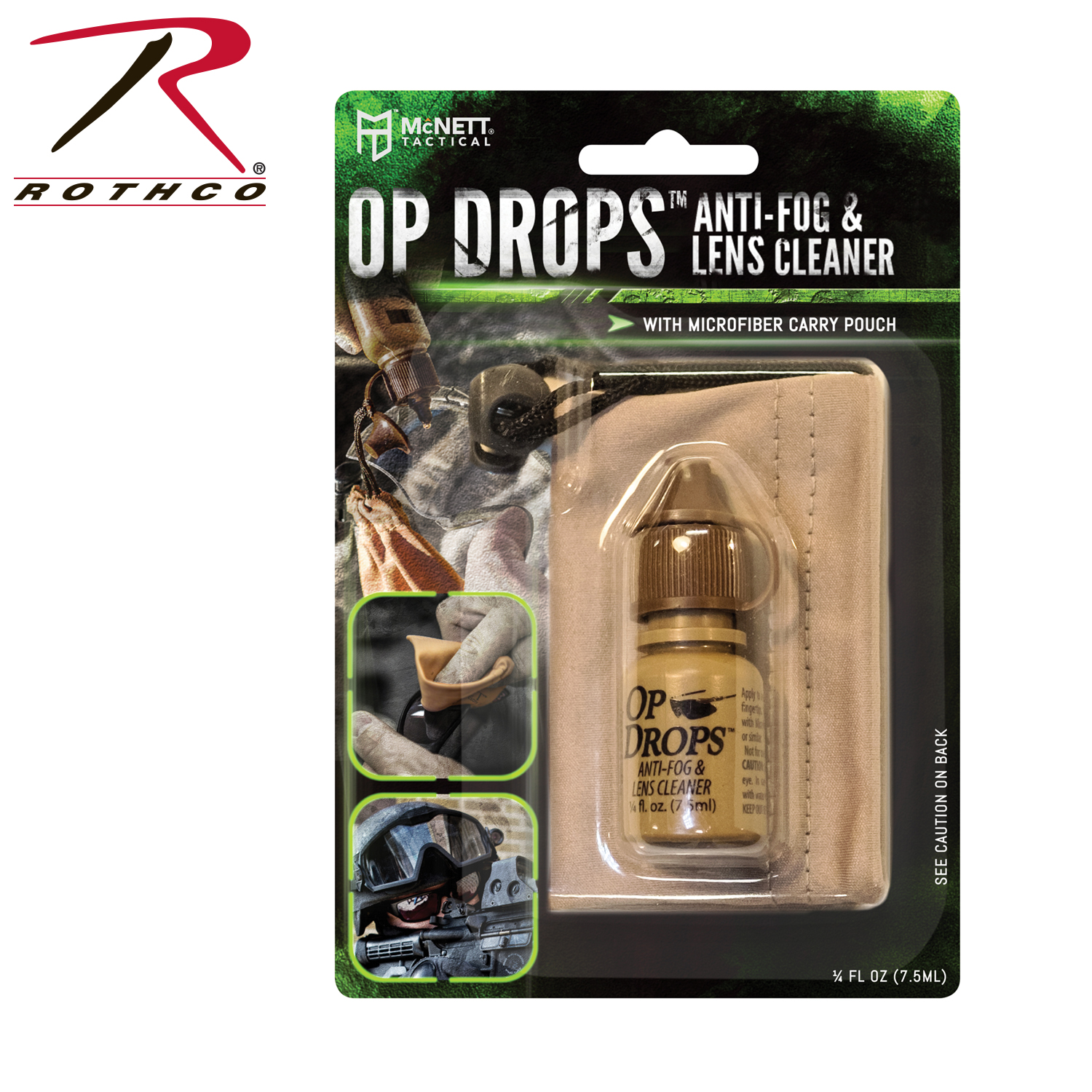 McNett Tactical OP Drops offer superior anti-fog protection and lens cleaning system to improve optical performances. These lens cleaning drops can be used on sunglasses, goggles, scopes, and much more! This lens cleaning system comes with a micronet microfiber cleaning cloth to aid in the lens cleaning process. Never lose the alcohol-free lens drops with a lint-free carry pouch that can be attached to the OP drop cap. McNett Tactical’s lens cleaning kit provides a .25 oz bottle of the lens cleaning solution.