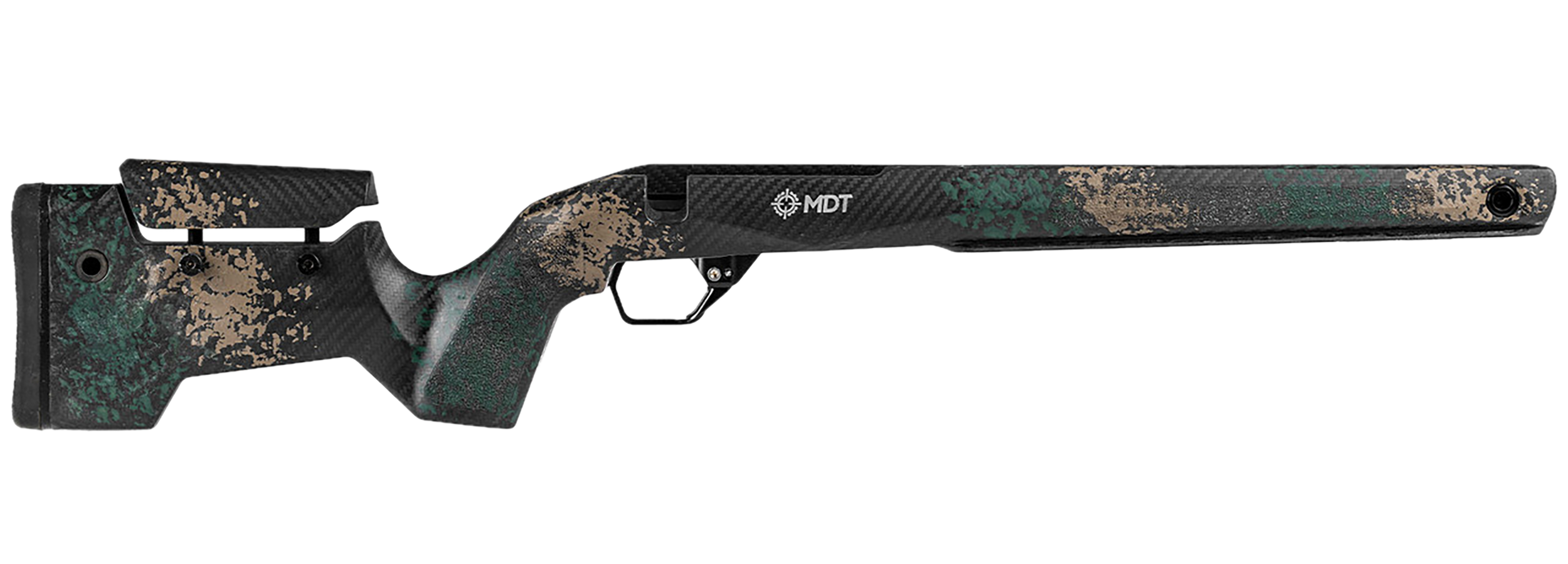 The MDT CRBN Rifle Stock is both incredibly lightweight and durable. This means you can maneuver through rough terrain on long hunts without feeling weighed down, while also trusting that your stock will withstand harsh conditions and heavy use. Filled with rigid foam, the CRBN Stock absorbs harmonic vibrations, resulting in a "dead-feeling gun", enabling you to spot your trace, stay on target, and shoot comfortably for longer. Upgrade your rifle with ease and hit the range in no time. Simply drop your action and bottom metal into place and tighten two screws.