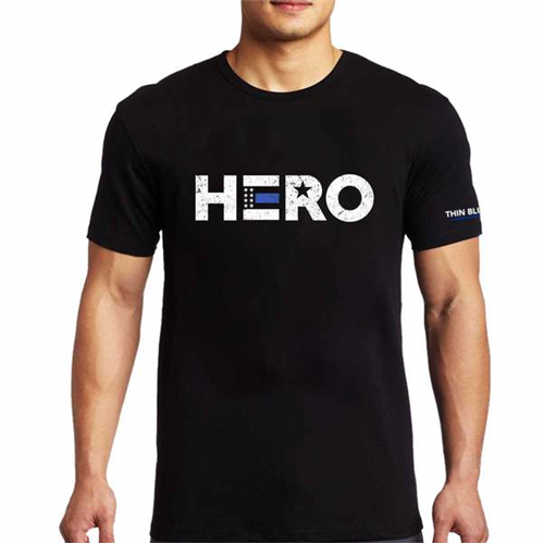 Our exclusive Thin Blue Line USA HERO T-Shirt was designed to remind others of the commitment our law enforcement officers make each and every day to protect us. The distressed lettering features a Thin Blue Line symbol that shows your support of the officers who are sworn to defend us until their last breath. Represent the men and women who defend our communities by wearing this shirt to encourage our continued movement to #BACKTHEBLUE.