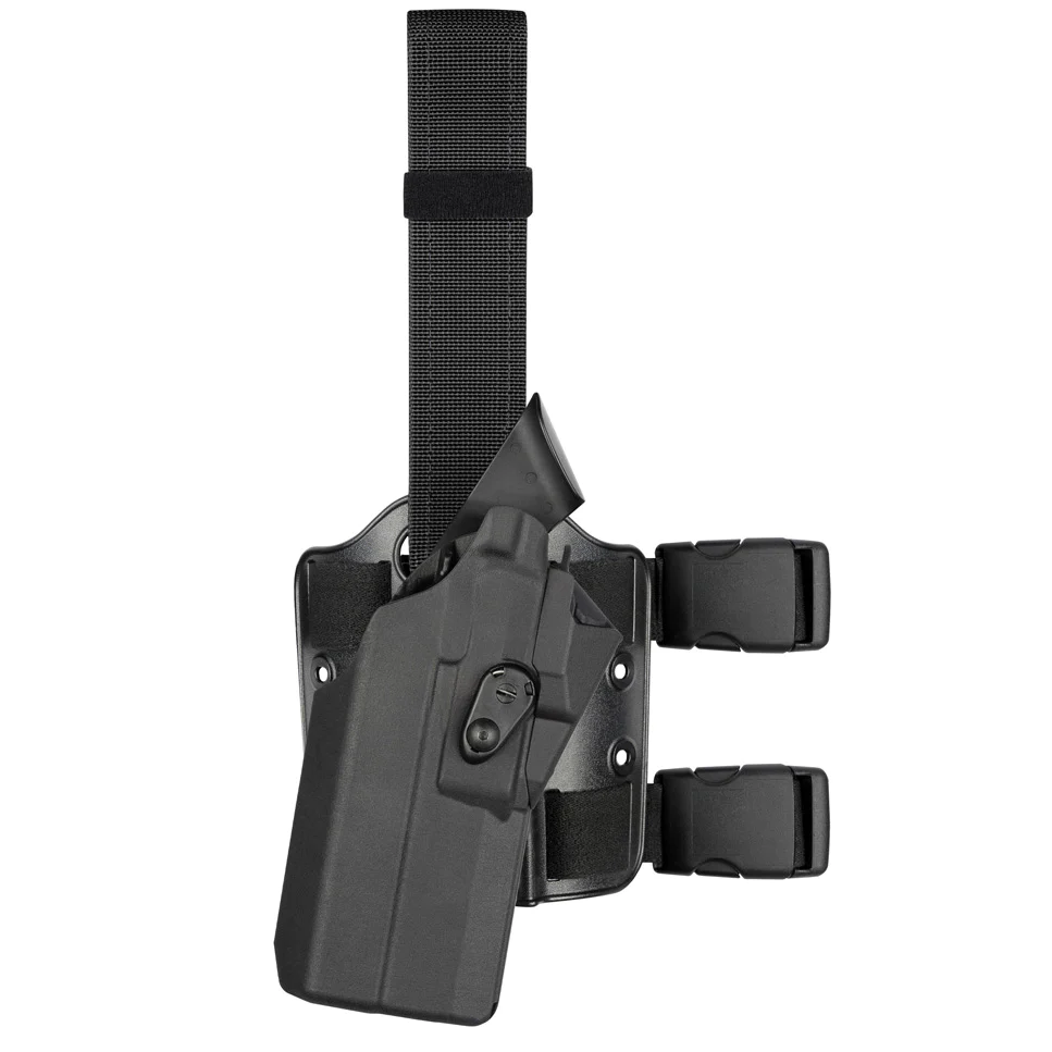 The 7384RDS open-top tactical holster is specifically designed to fit and protect handguns with red dot optics. This holster features ALS retention. Once the weapon is holstered, it locks securely into place. When the ALS is de-activated by the thumb, a simple straight up draw is used. This model is constructed of the innovative SafariSeven material, a unique nylon blend from DuPont. SafariSeven is highly durable and practically impervious to the elements. The 7384RDS holster features a standard double strap leg shroud with mounting holes for optional accessories with an adjustable vertical leg strap. Gun fit: Glock 17 ITI M3 Glock 17 Streamlight TLR-1 Glock 17 Streamlight TLR-1HL Glock 17 SureFire X200 Glock 17 SureFire X300 Glock 17 SureFire X300U Glock 17 Inforce APL Glock 17 Nightstick TWM-350 Glock 17 Nightstick TWM-350S Glock 17 Nightstick TWM-850 Glock 17 Nightstick TWM-850S Glock 22 ITI M3 Glock 22 Streamlight TLR-1 Glock 22 Streamlight TLR-1HL Glock 22 SureFire X200 Glock 22 SureFire X300 Glock 22 SureFire X300U Glock 22 Inforce APL Glock 22 Nightstick TWM-350 Glock 22 Nightstick TWM-350S Glock 22 Nightstick TWM-850 Glock 22 Nightstick TWM-850S