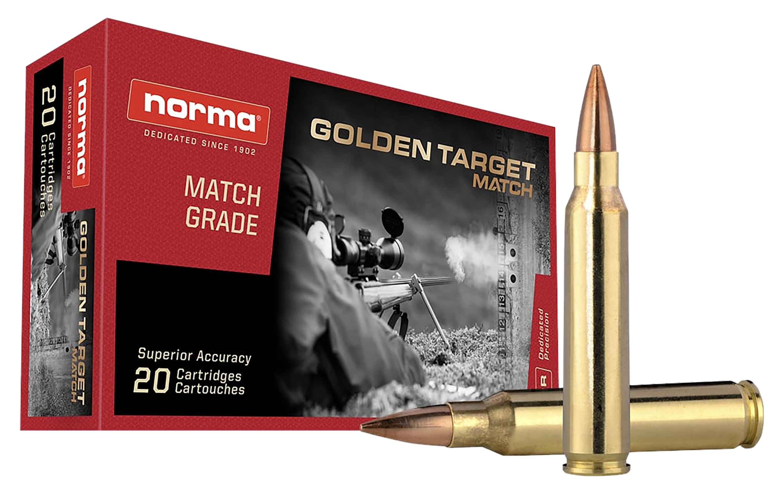 Norma Dedicated Precision - .223 Rem Golden Target Match 77 gr is a high-performance, precision-engineered round designed for competitive shooting. This round is made with the highest quality components and is engineered to deliver consistent accuracy and performance. The Norma Dedicated Precision - .223 Rem Golden Target Match 77 gr features a 77 grain, boat-tail hollow point bullet with a muzzle velocity of 3,000 feet per second and a muzzle energy of 1,300 foot-pounds. The Norma Dedicated Precision - .223 Rem Golden Target Match 77 gr is perfect for competitive shooting, target practice, and hunting.