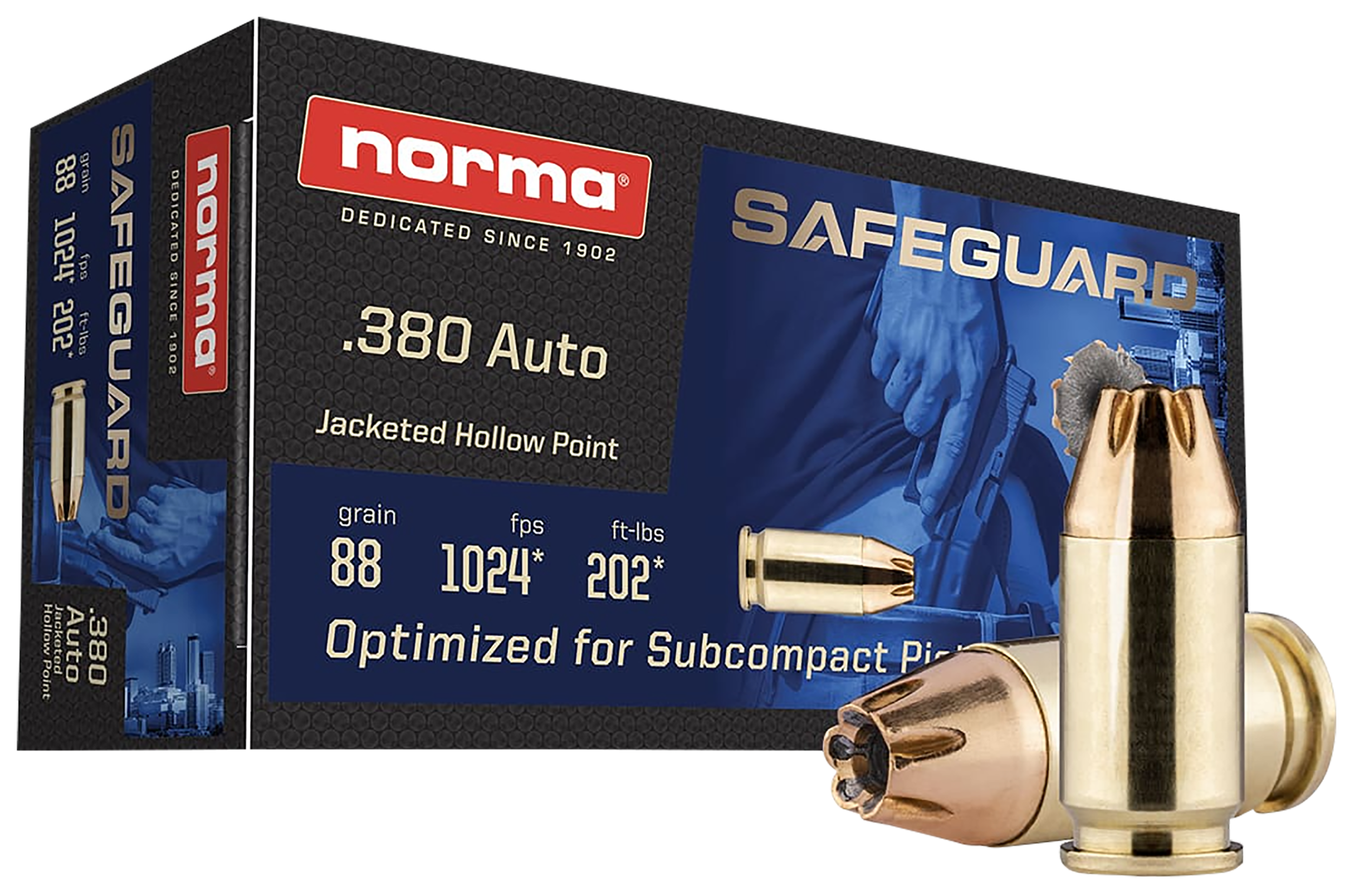 Introducing the .380 Auto Safeguard JHP 88 gr the ultimate self-defense ammunition solution. Crafted with precision and reliability in mind, this cartridge combines the power of a Jacketed Hollow Point projectile with top-quality Norma brass, ensuring you get the perfect blend of expansion, penetration, and affordability.
