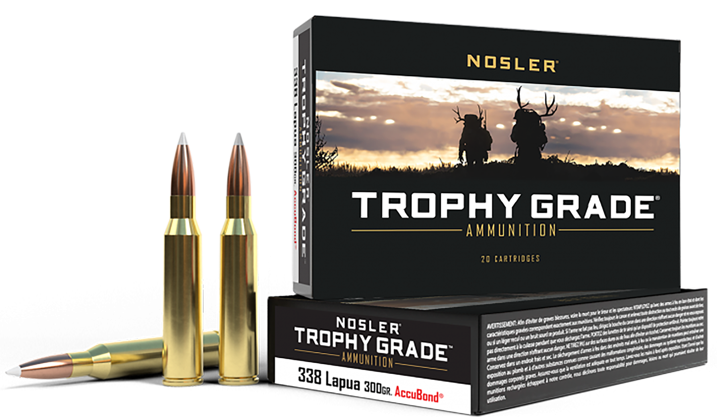 Manufactured to Nosler's strict quality standards, Trophy Grade ammunition uses Nosler Custom brass and Nosler bullets to attain optimum performance, no matter where your hunting trip takes you. Whether you want your ammunition loaded with AccuBond, Partition Ballistic Tip, or E-Tip, Nosler Trophy Grade Ammunition will have the right load for the right game.
