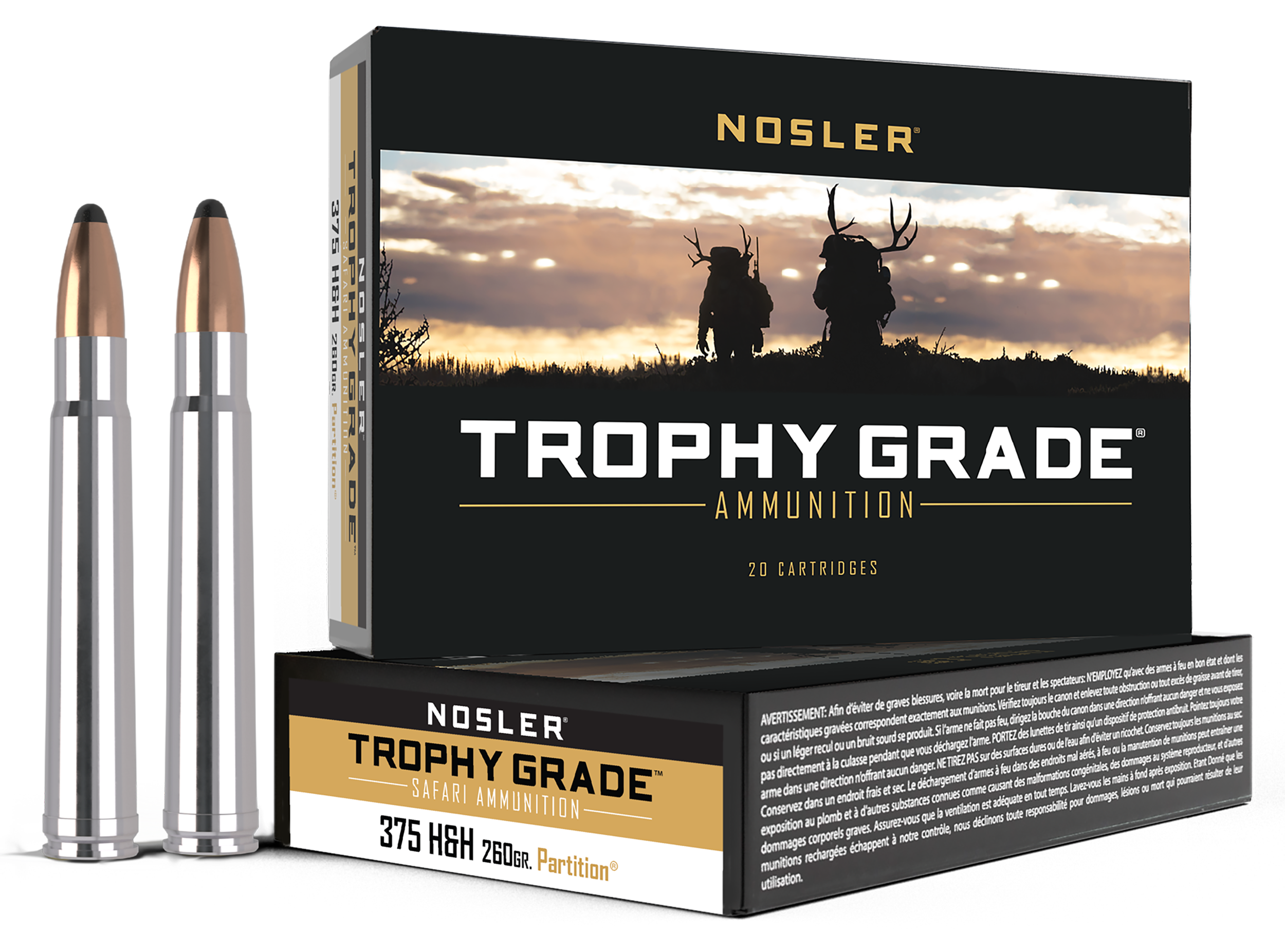 Manufactured to Nosler's strict quality standards, Trophy Grade ammunition uses Nosler Custom brass and Nosler bullets to attain optimum performance, no matter where your hunting trip takes you. Whether you want your ammunition loaded with AccuBond, Partition Ballistic Tip, or E-Tip, Nosler Trophy Grade Ammunition will have the right load for the right game.