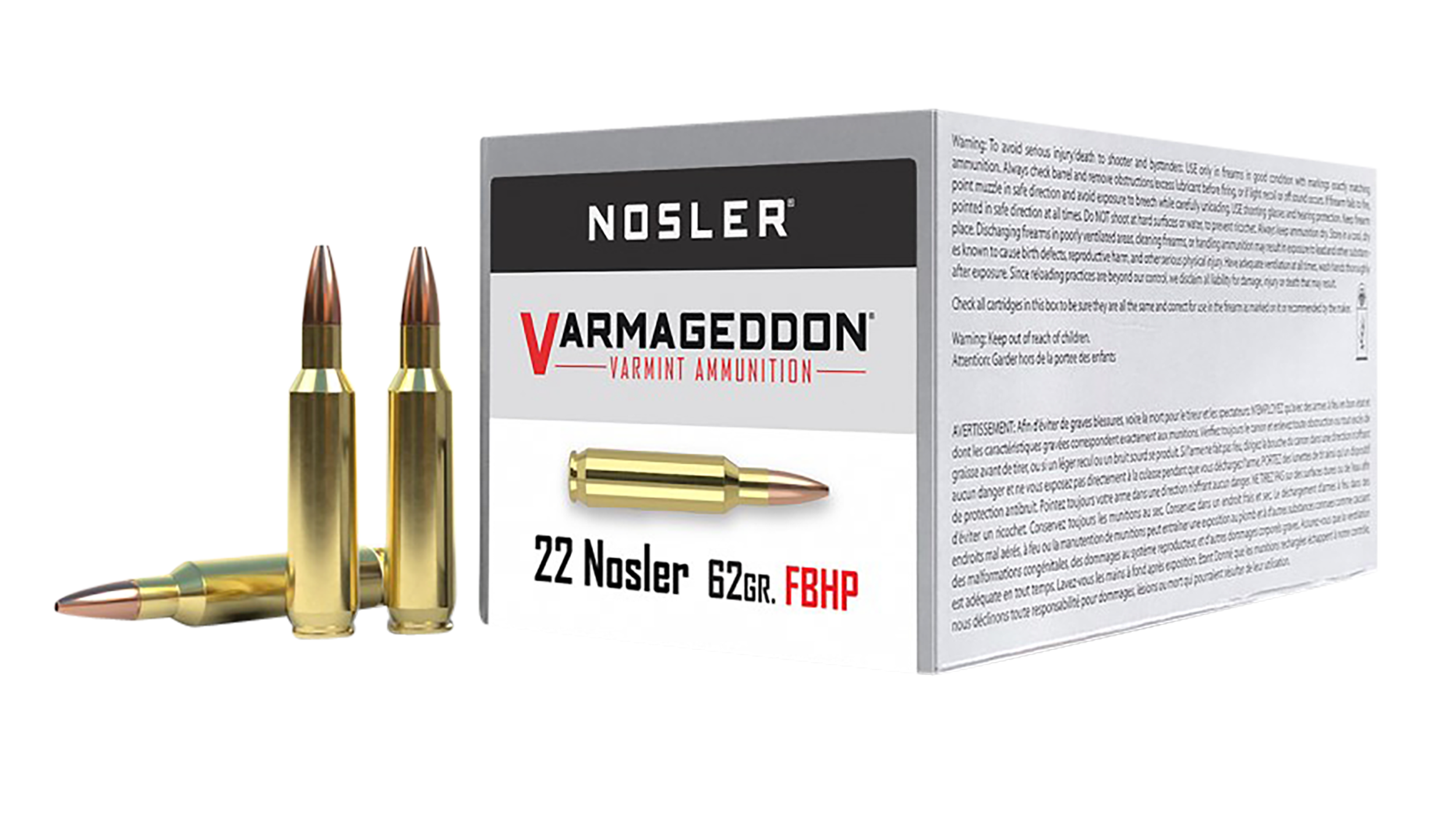 Noslers Varmageddon line of loaded ammunition and component bullets. Featuring a highly accurate polymer tip or hollow point combined with a flat base design, Varmageddon products were created for the high-volume varmint shooter who requires the utmost precision. Loaded with Nosler brass, Varmageddon ammunition provides the highest levels of performance for any varmint hunter.