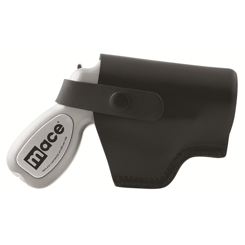 The perfect way to carry the Mace pepper gun. This sturdy black leather holster is molded for a custom fit and features a snap closure and belt loop.