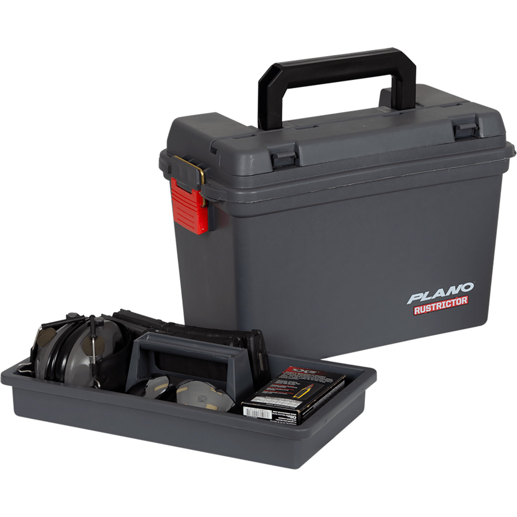 Sealed-shut, element protected ammo storage with heavy-duty construction, water-resistand O-ring seal, brass-bailed latch and Rustrictor rust and corrosion protection