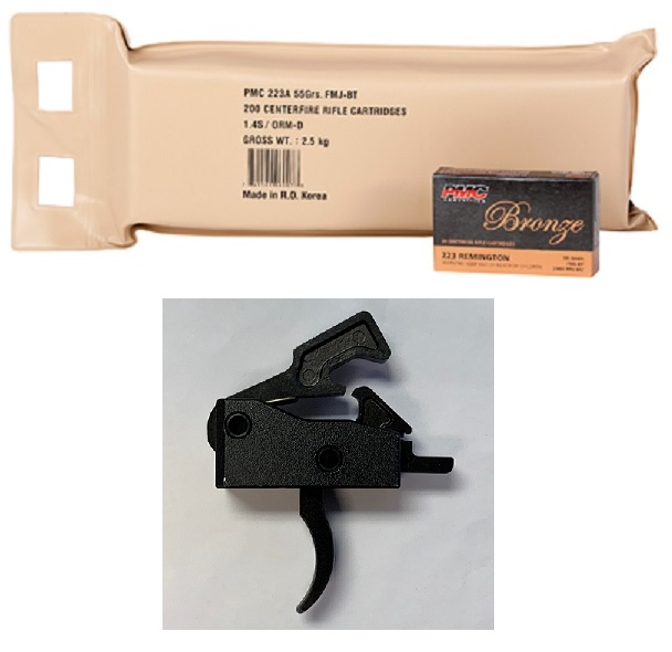 PMC Bronze .223 Remington Rifle Ammo - 55 Grain | FMJ-BT | 200rd Battle Pack Bundled w/ Tactical Superiority Curved Drop-In Trigger