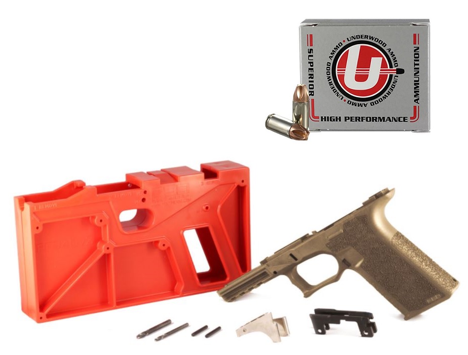 Polymer 80 PF940 80% Full Size Pistol Frame Kit V2 - FDE | Compatible with Glock 17/22 Bundled w/ FIVE Underwood Ammo 9mm Luger Handgun Ammo - 90 Grain | Xtreme Defender | 20rd Box