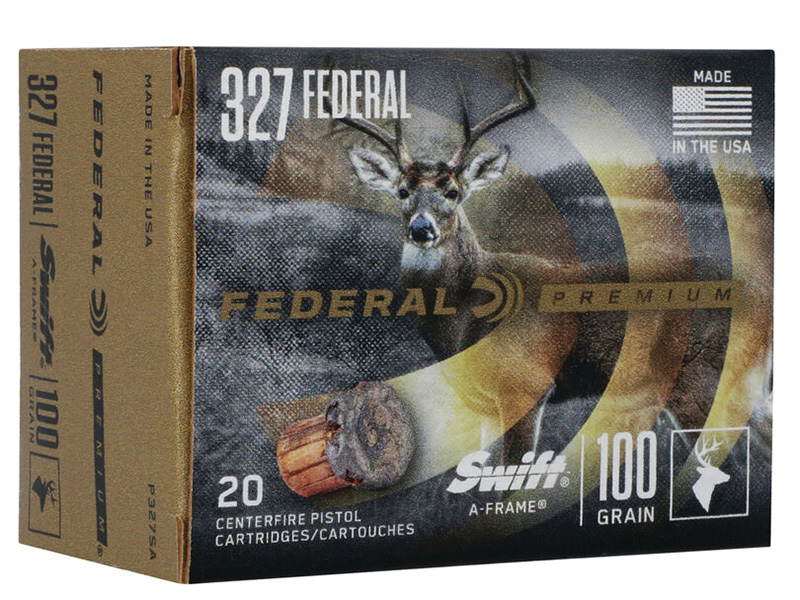 Federal, MFG# P327SA, UPC: 604544661965, UOM: Box, Premium, .327 Federal Magnum, 100 Grain, Swift A-Frame, 20/Box, FEDE, FEDEAM40, FEDEAMALL, AM40, AMALL, Case:10