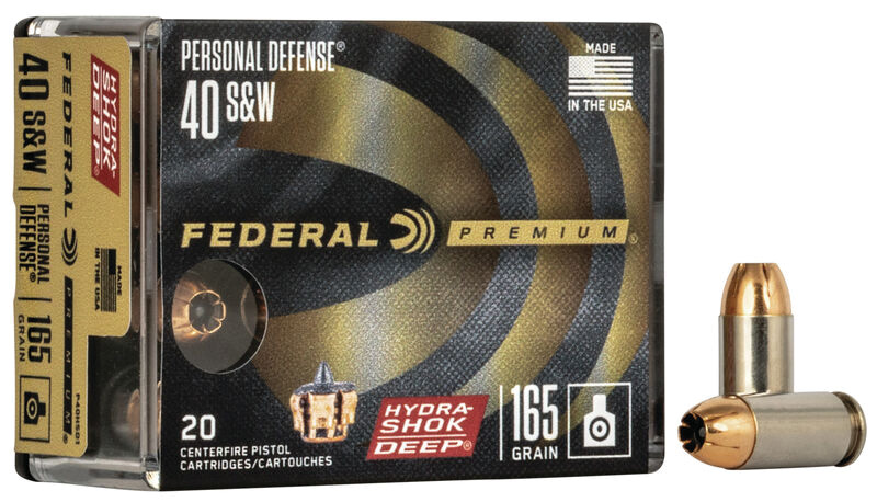 Federal, MFG# P40HSD1, UPC: 604544642872, UOM: BOX, Premium Personal Defense, 40 S&W, 165 grain, Hydra-Shok Deep, 20/box, FEDE, FEDEAM40, FEDEAMALL, AM40, AMALL, Case: 10