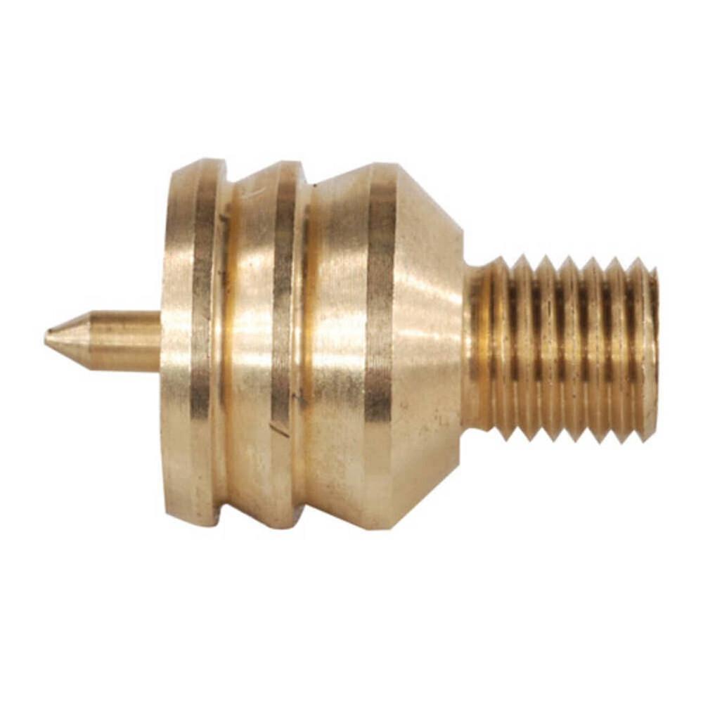 A brass spear tip shotgun jag draped with a patch completely covers the inside of the barrel for a superior way to clean your shotgun barrel. Each shotgun jag is stamped with the appropriate gauge for easy recognition during cleaning.