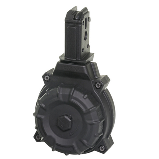 50-round drum magazine - Fits the CZ Scorpion 9mm pistol - Drum housing constructed of a proprietary DuPont Zytel� based polymer - Magazine upper tower has an over molded heat treated carbon steel feed lip reinforcement - Injection molded magazine follower - Magazine spring formed from heat treated stainless steel - Made in U.S.A.