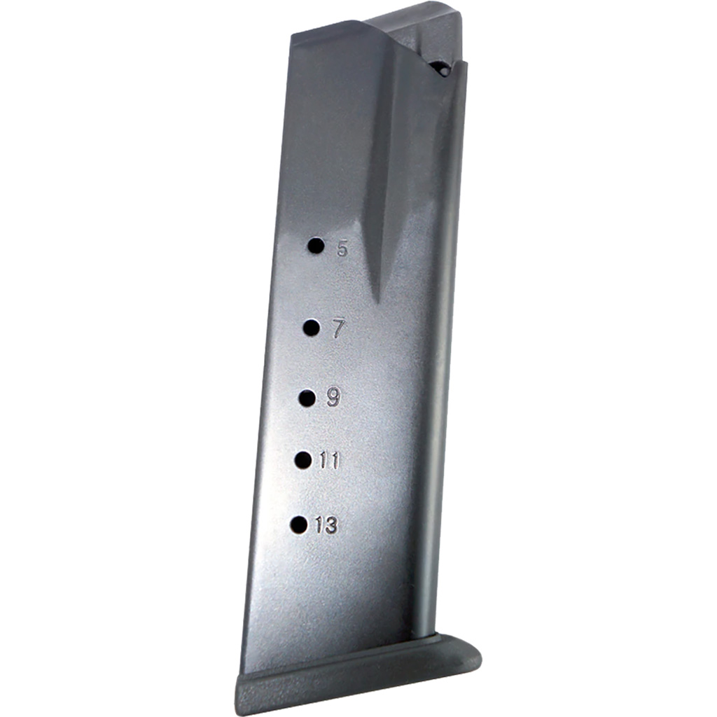This 13-round magazine from ProMag fits Springfield Armory XD-M .45 ACP pistols. The body is constructed from heat treated steel with a black oxide finish. It features an injection molded magazine follower and a spring formed from heat-treated chrome silicon wire. Made in the USA.