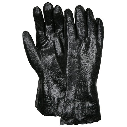 Even the dirtiest, harshest jobs won't destroy the will of these tough gloves. Single dipped PVC coated gloves provide basic protection in light chemical applications. Glove lengths range from knit wrist to 18 inches to provide different levels of protection. The 6212R is an industry standard black single dipped glove with a rough finish and interlock lining.  It measures 12 inches in length for added wrist protection.  Looking for the best PVC coated gloves?  Look no further than MCR Safety!