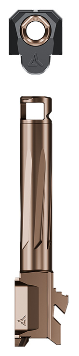 The Radian� AFTERBURNER + RAMJET combo provide unprecedented recoil reduction and match grade accuracy in a concealed carry package. The threadless barrel design allows for effortless install/removal for cleaning while LEGAL FOR SALE IN ALL 50 STATES*. - The AFTERBURNER compensator is machined from hardened stainless steel and the RAMJET barrel from hardened 416R SS; both are enhanced with a Radianite coating. This combination achieves low friction high hardness and high corrosion resistance making overall durability and erosion from muzzle blast a non-issue. Angled front faces on the AFTERBURNER aid in holstering. - The INTRA-LOK� mounting system uses the taper lock principle; a tapered locking screw interfaces with an angled V-groove on the underside of the barrel. This perfectly times the compensator as it locks down onto the upper barrel profile on the muzzle end of the barrel. - INTRA-LOK� allows the user to simply slide the compensator over the barrel insert and tighten the locking screw making for a simple and repeatable installation process. This system allows the user to easily remove the barrel from the slide for cleaning. - Installed onto a Glock G19 the AFTERBURNER + RAMJET combo increases the overall length of the slide to a G17� allowing compatibility with all G17� holsters. - This combination kit is for: GLOCK G19 GEN3 (or compatible) - AFTERBURNER / Hardened SS - RAMJET-SR / Hardened 416R SS - Match grade barrel - Gas sealing chamber - Loaded chamber indicator
