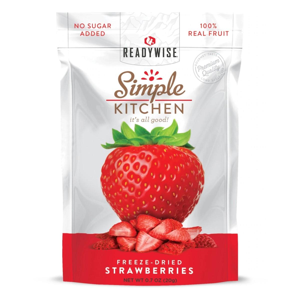 Try Simple Kitchen's (a ReadyWise Company brand) freeze-dried strawberries. No fake flavors or preservatives.