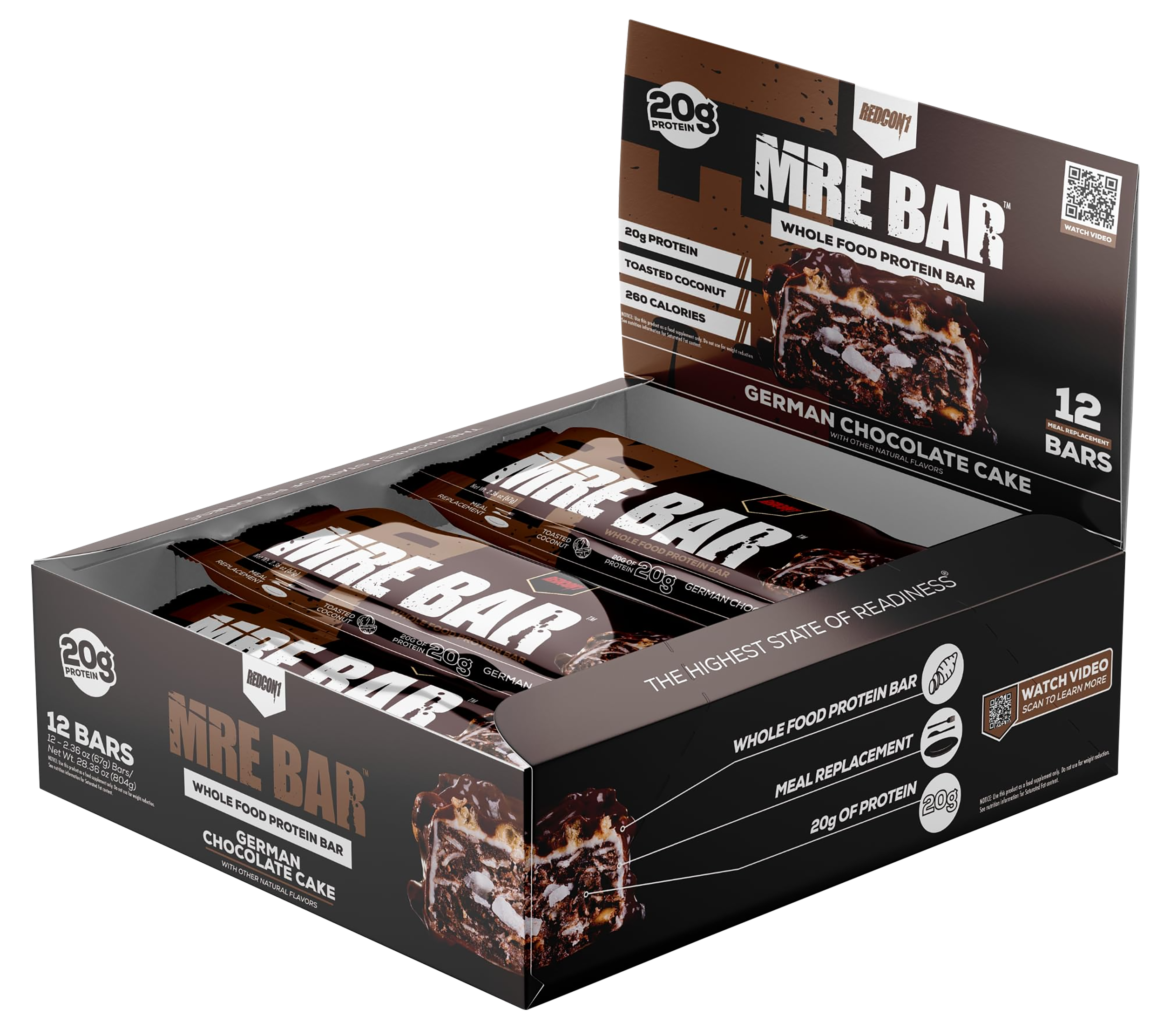 Redcon1 RC1MREBGCC12 MRE Protein Bar German Chocolate Cake 12 Pack