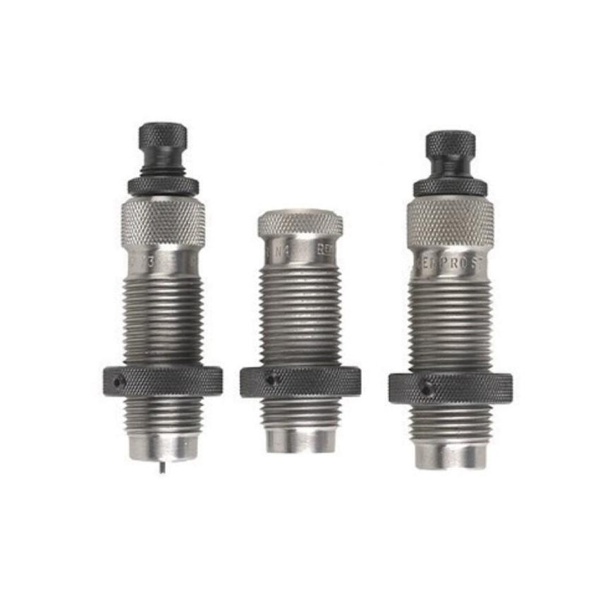 The Redding Pro Series Die Set (designed for progressive machines) includes the NxGEN carbide sizing die but does not include an expander die because most popular progressive machines expand the case mouth at the powder drop station. A special seating die is supplied with a large entry radius but does not provide bullet crimping ability. This set is also supplied with a specialized bullet crimping die.
